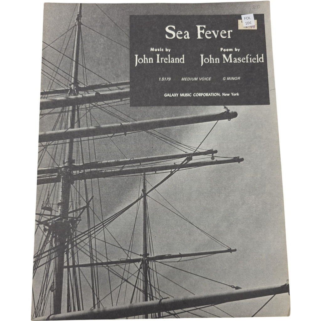 The product is a vintage sheet music for piano, titled "1916 Sea Fever" in G minor, composed by Ireland & Masefield. Published by Galaxy Music Corporation in the United States, this medium voice piece is a unique and collectible item for musicians and music enthusiasts alike. Perfect for those who appreciate historical and classical music, this sheet music offers a glimpse into the musical landscape of the early 20th century.