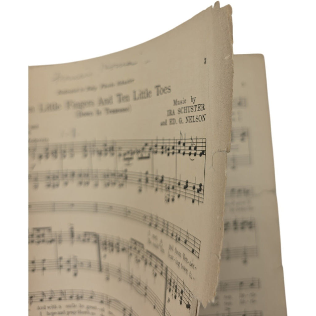 The product is a vintage sheet music titled "1921 Ten Little Fingers and Ten Little Toes Down In Tennessee" published by Leo. Feist, Inc in the United States. This sheet music falls under the genre of Musicals and contains the lyrics and music for the song. Perfect for collectors or musicians looking to evoke the nostalgia of classic musical tunes from the early 20th century, this unique piece of sheet music captures a piece of musical history from Tennessee.