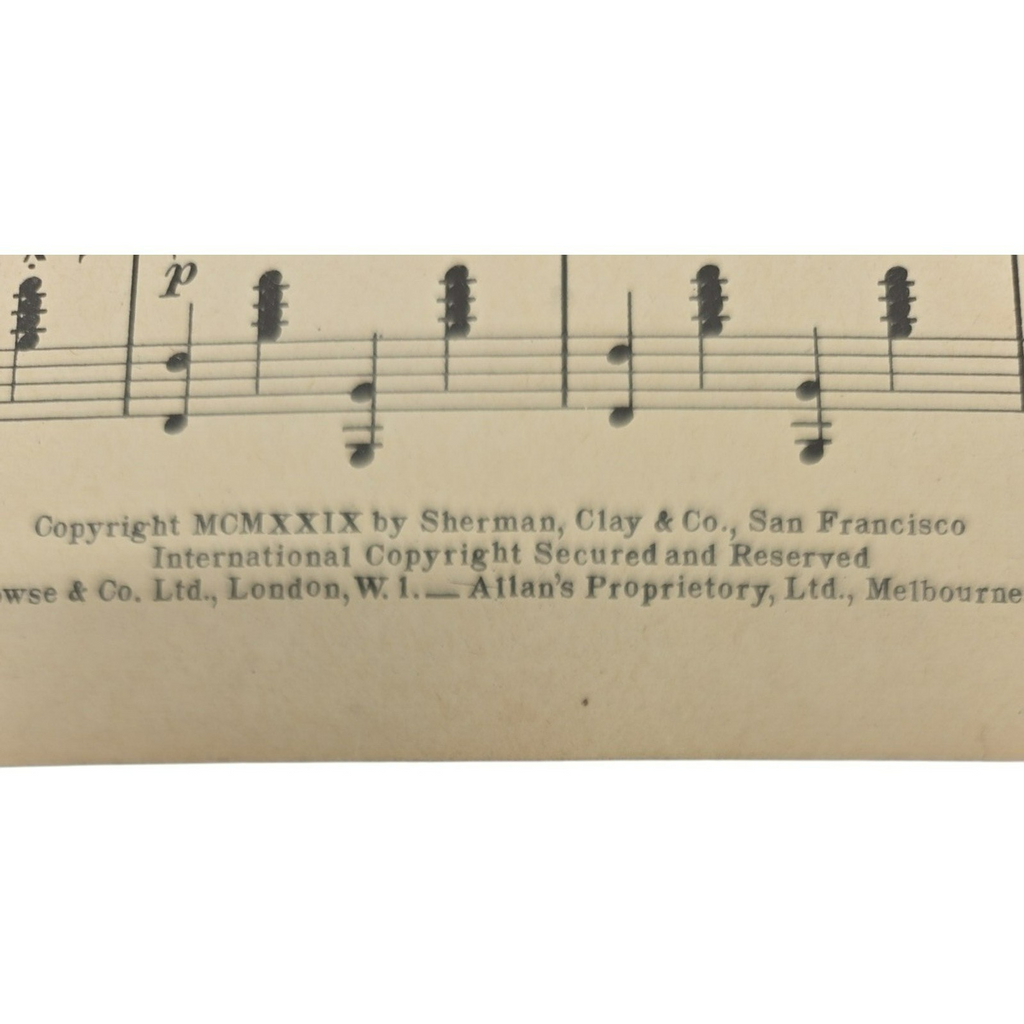 The 1929 sheet music for "The Wedding Of The Painted Doll" by Nacio Herb Brown Beaumont is a vintage piece of musical history from the United States. Published by Sherman Clay & Co., this solo piano sheet music falls under the genre of Musicals and is categorized as an Intermediate level experience. With just one unit available, this nostalgic piece allows musicians to delve into the charm and sophistication of musical compositions from the past, perfect for collectors or enthusiasts of vintage sheet music.