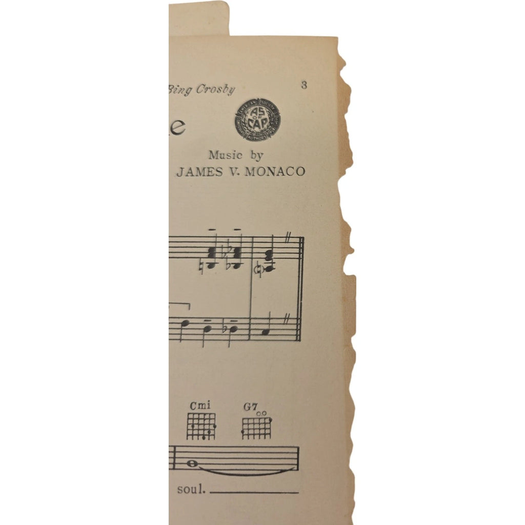 The product is a vintage sheet music from 1938 titled "On the Sentimental Side" featuring Bing Crosby and his musical group. This song was featured in the film "Doctor Rhythm" and is categorized as a musical genre. The sheet music is published by Select Music Publications, Inc., a United States-based company. Ideal for collectors or musicians interested in musical instruments and gear, this sheet music offers a glimpse into the musical landscape of the past.