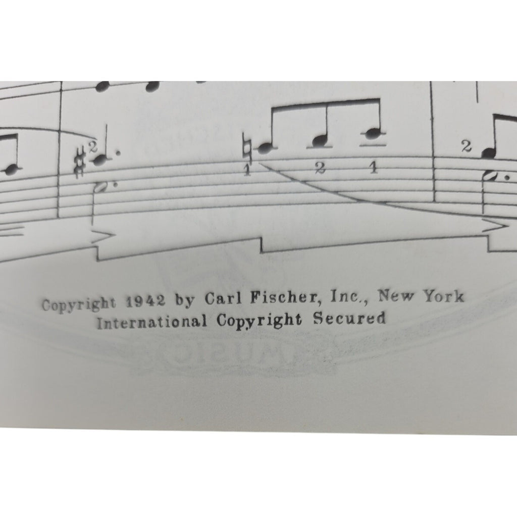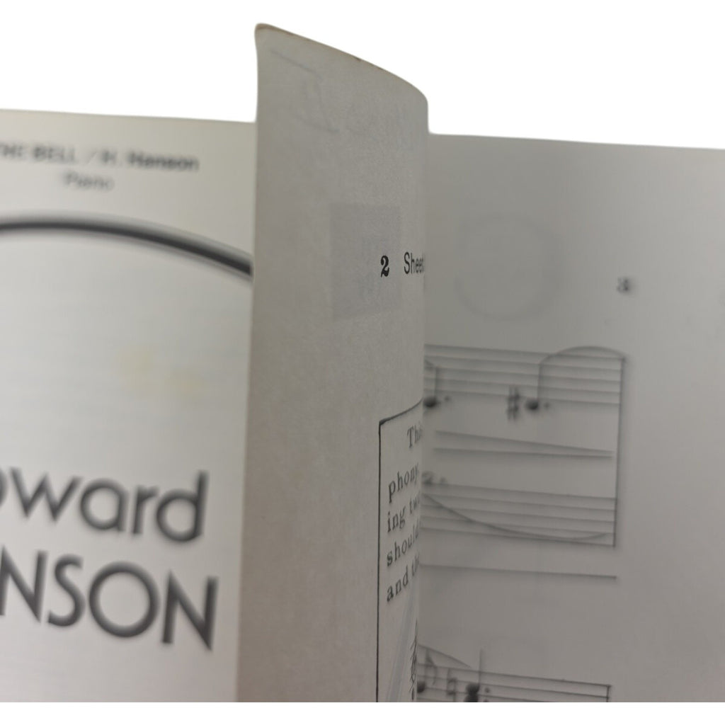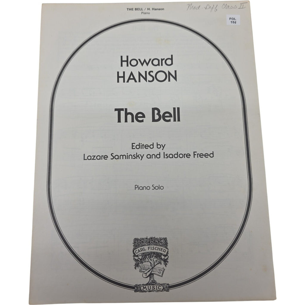 The product is a 1942 vintage sheet music for a piano solo of "The Bell" by Howard Hanson. It is published by Carl Fischer Music in the United States and is categorized as a musical instrument and gear item. This rare piece of sheet music is a unique collectible for music enthusiasts and pianists interested in playing musical scores from the past.