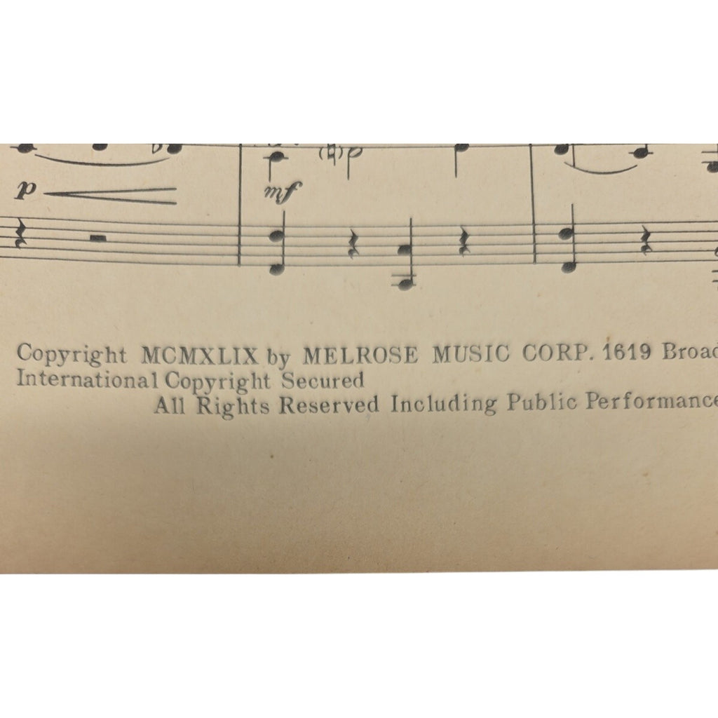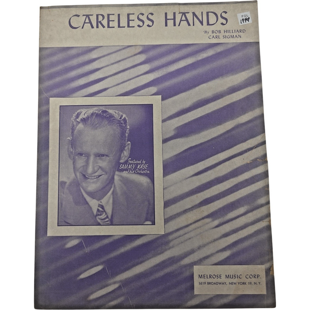 The product is a 1949 vintage sheet music for the song "Careless Hands" with music by Bob Hilliard, Carl Sigman, and Sammy Kaye. Published by Melrose Music Corp in the United States, this sheet music belongs to the genre of Musicals. It is a single unit quantity of sheet music from the year 1949, providing a glimpse into the musical compositions of that era. Ideal for collectors or musicians interested in vintage music, this sheet music captures a piece of musical history from the mid-20th century.