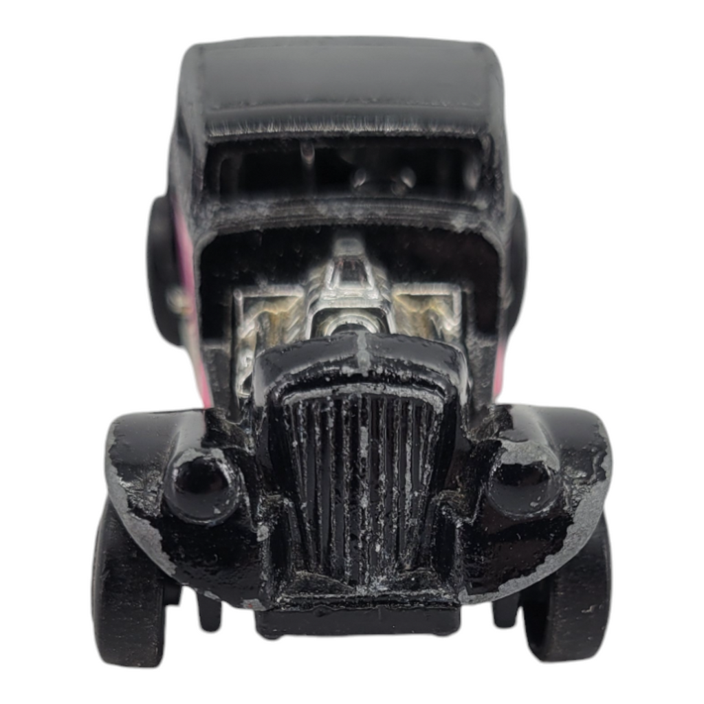 1982 Matchbox 33 Willys Street Rod Diecast Hot Rod Black with Pink Flames