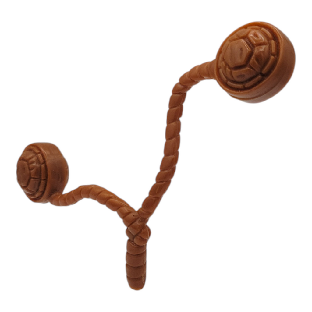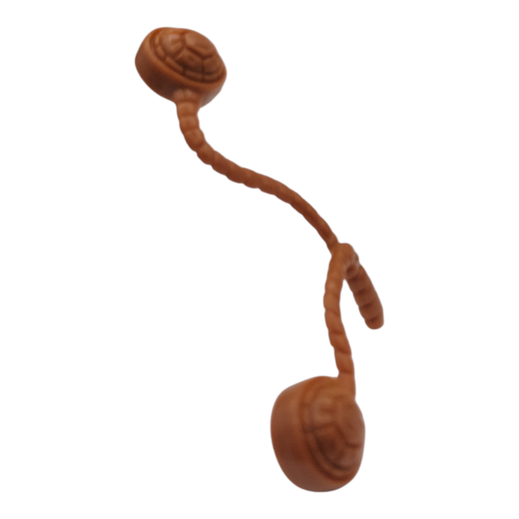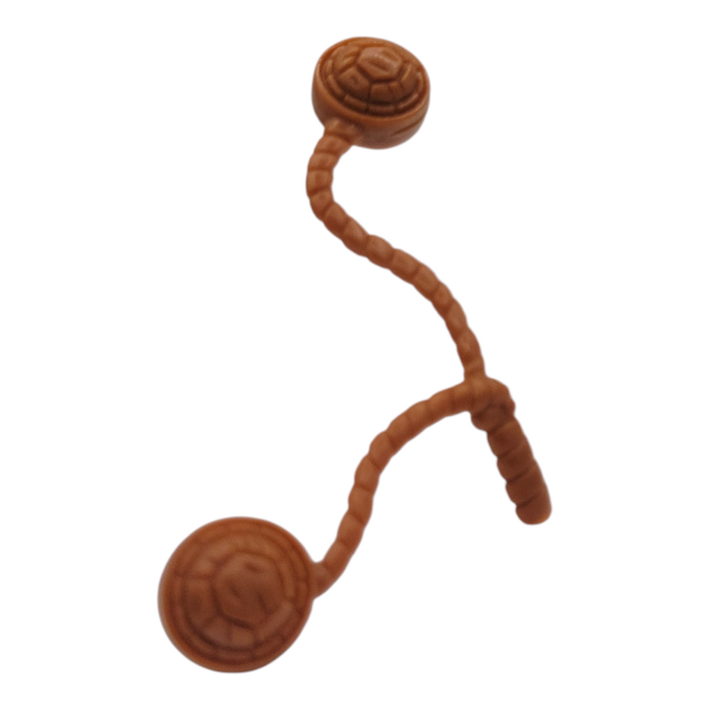 The product is a vintage 1991 Raphael action figure accessory from the Teenage Mutant Ninja Turtles franchise. This chrome-plated brown turtle weapon, made by Playmates Toys, is a collectible item that adds to the nostalgia of the popular TMNT TV show and movies. Perfect for fans of the series, this unique accessory showcases the iconic character Raphael and is a must-have for any TMNT enthusiast's collection.