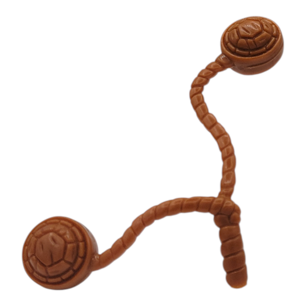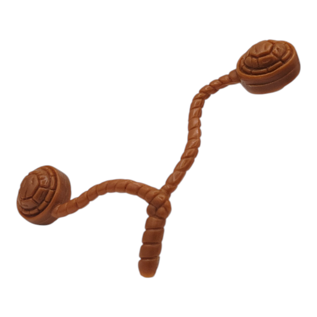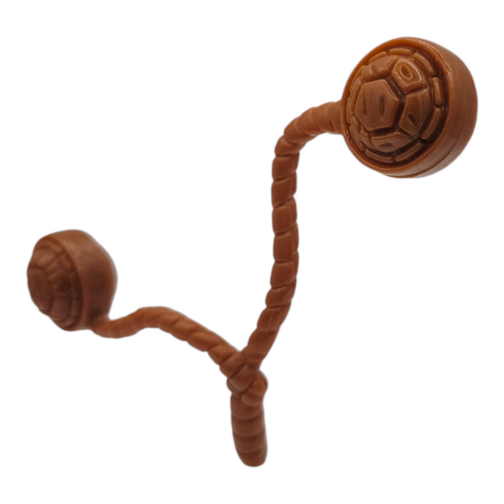 The product is a vintage 1991 Raphael action figure accessory from the Teenage Mutant Ninja Turtles franchise. This chrome-plated brown turtle weapon, made by Playmates Toys, is a collectible item that adds to the nostalgia of the popular TMNT TV show and movies. Perfect for fans of the series, this unique accessory showcases the iconic character Raphael and is a must-have for any TMNT enthusiast's collection.