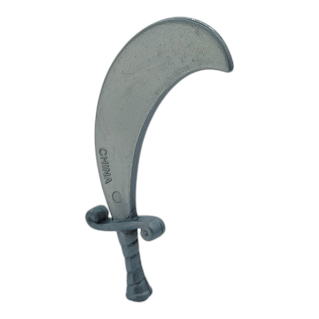 The 1993 Disney Aladdin Jafar Replacement Weapon Sword Accesory Part is a vintage collectible item from the Disney franchise. This gray plastic sword is designed for action figures of the character Jafar from the Aladdin TV show and movie. Made in China during the 1990s, this sword is a unique and nostalgic piece for fans of Disney collectibles.