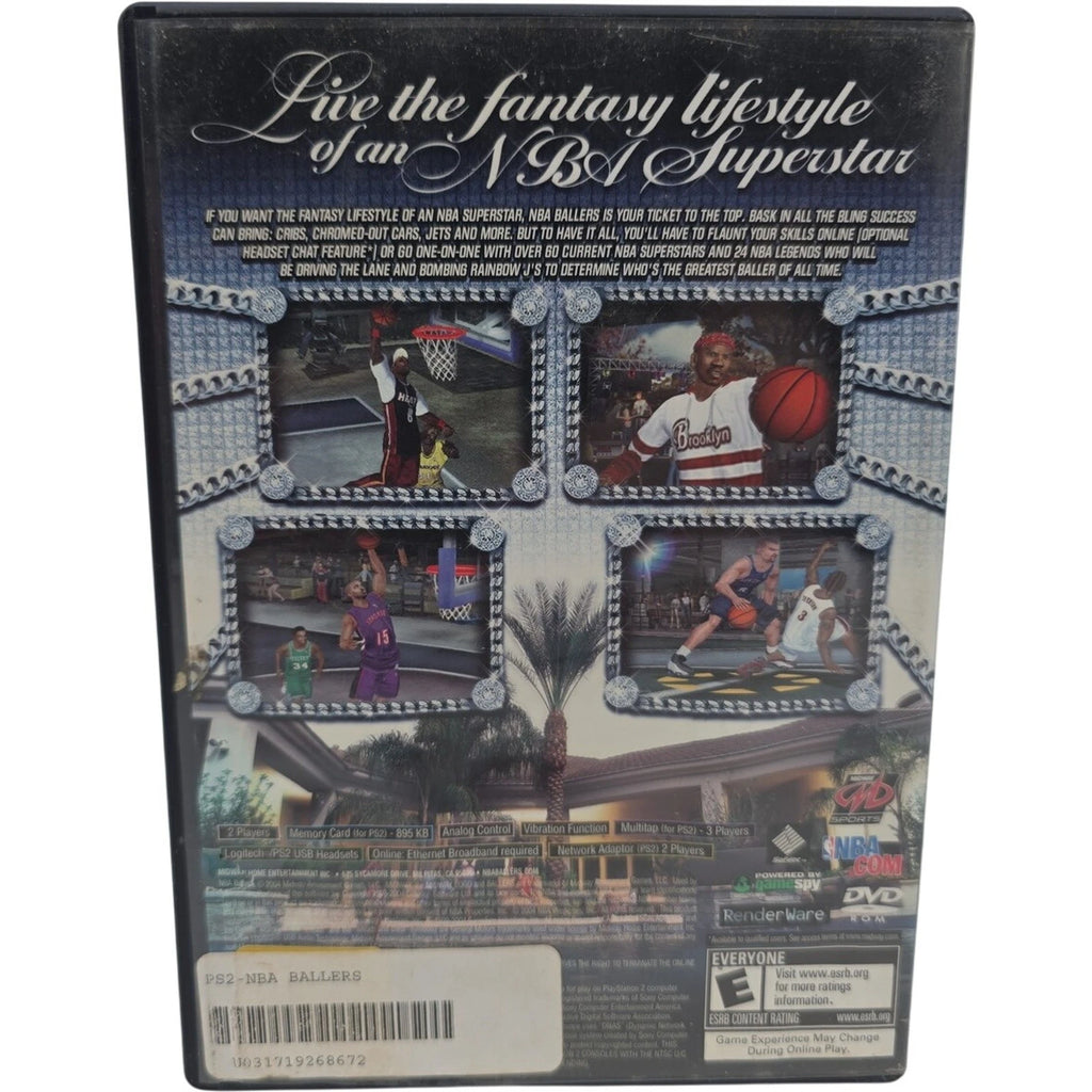 The 2004 NBA Ballers PS2 video game for Sony PlayStation 2 is a sports game in the NBA Ballers series. Published by Midway Home Entertainment, the game offers basketball gameplay for players of all ages with an E-Everyone rating. This NTSC-U/C (US/Canada) region game provides an immersive experience for fans of basketball and the NBA Ballers franchise, allowing players to engage in exciting gameplay and experience the thrill of the sport on their gaming console.