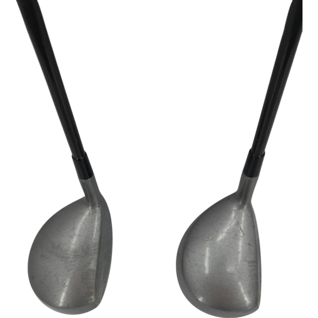 The Adams Golf Tight Lies Air Assault Strong 3 and 7 Wood Set is a high-quality fairway wood set designed for right-handed male golfers. With graphite shafts for added power and flexibility, these clubs feature a sleek black and silver color scheme and a regular flex for optimal performance on the golf course. The set includes two clubs, a 3-Wood and a 7-Wood, with lengths of 44 inches and 43 inches, respectively. The Adams Golf Tight Lies model is known for its reliability and efficiency, making it a great choice for golfers looking to improve their game off the tee.