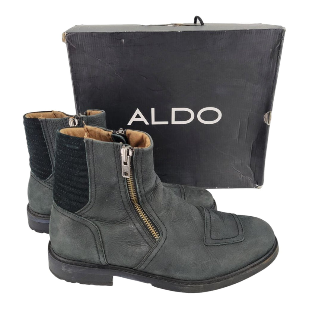 The Aldo Cadoelia 97 Black Leather Ankle Boots are a stylish and versatile choice for men. Featuring a convenient zipper closure, these boots have a biker style design that is perfect for casual, business, or travel occasions. Made with high-quality leather and offering comfort features, these boots are durable and comfortable enough for all-day wear. The black color and solid pattern make them easy to pair with a variety of outfits, while the ankle shaft style adds a modern touch to the overall look. Perfect for the fall and spring seasons, these boots are a must-have for any man's shoe collection.