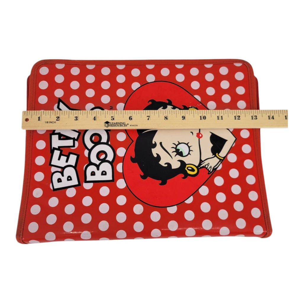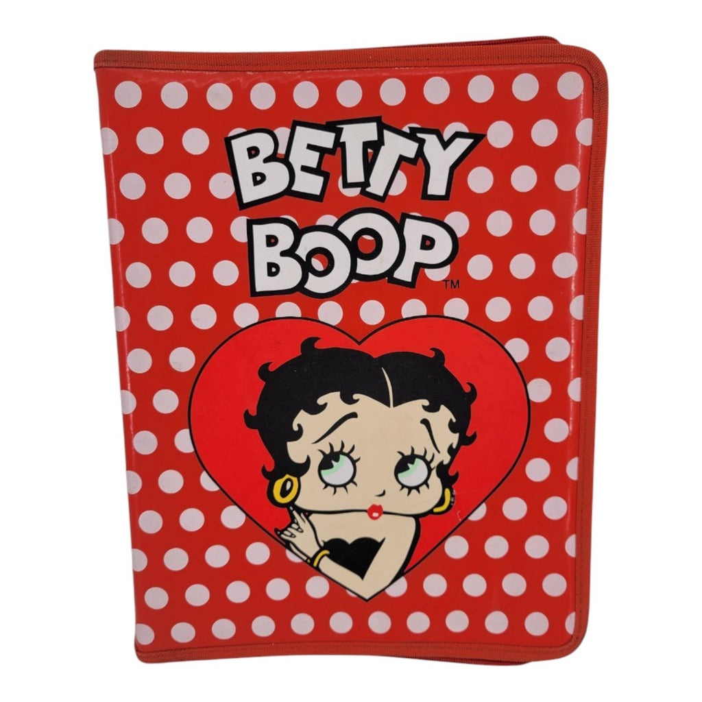 The Betty Boop Red Polka Dot 3 Ring Zipper Binder Folder is a stylish and collectible item featuring the iconic character Betty Boop. Manufactured in 2004 by Fleischer Studios, this vintage-style binder is perfect for fans of the classic TV show. With a zipper closure and a vibrant red color, this binder adds a touch of nostalgia to any collection. Made in China, this unique piece is a must-have for any Betty Boop enthusiast looking to store their animation merchandise.