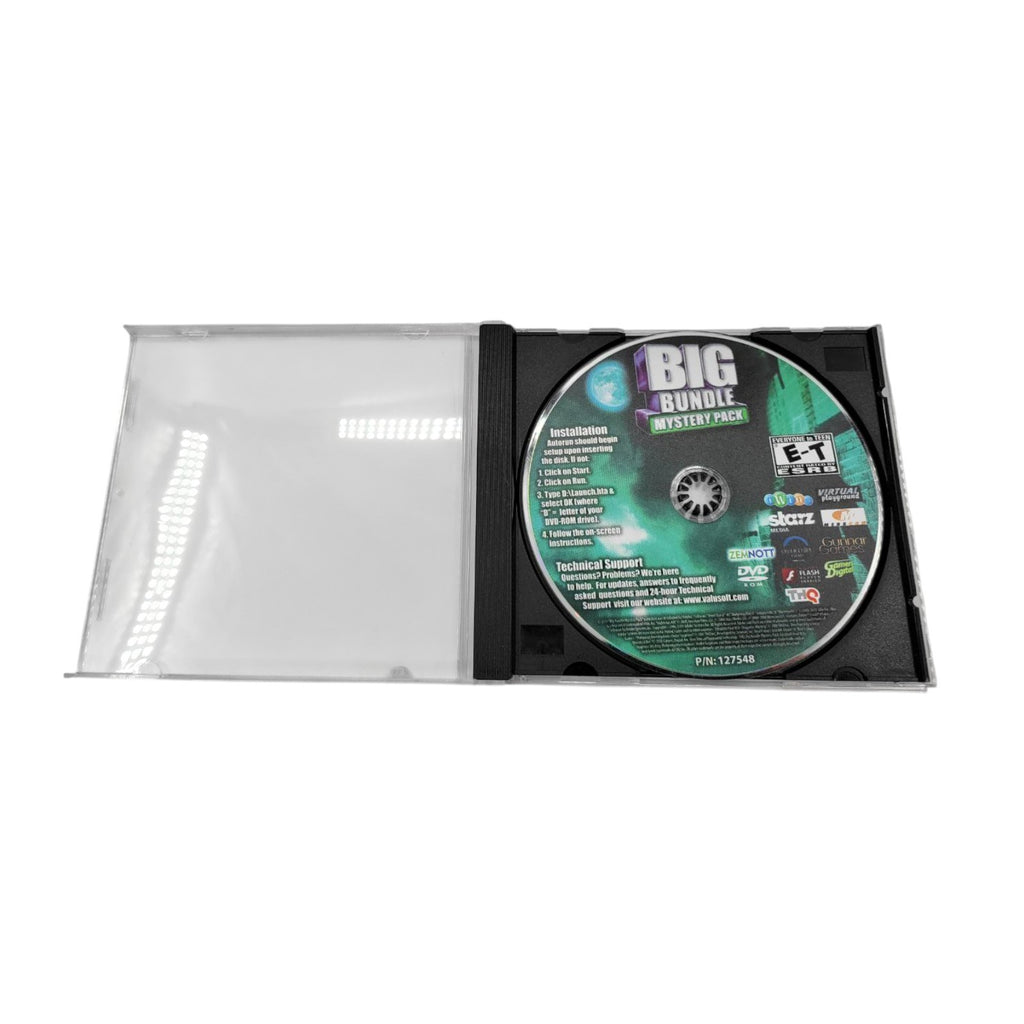 THQ Software Big Bundle Mystery Pack PC CD Rom Game Windows XP/Vista/7 - The Big Bundle Mystery Pack PC Game DVD ROM is a compilation of multiple games published by THQ in 2011 for PC platform. This mystery pack includes a variety of games suitable for T-Teen rated players. With a region code of NTSC-U/C (US/Canada), this bundle offers a diverse selection of titles for Windows XP/Vista/7 operating systems. Perfect for gamers looking for a mix of different genres and gameplay styles, this mystery pack provides an exciting addition to any collection.