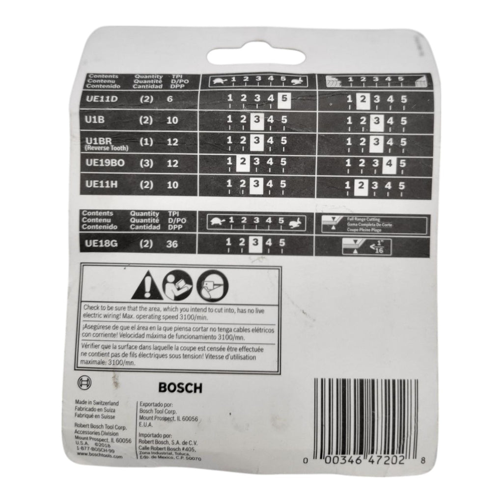 The Bosch U12BC Jigsaw Blade Set is a 12-pack of U-shank blades, designed for cutting wood, metal, and plastic. Made of bi-metal material, these blades offer durability and versatility for various cutting tasks. With 8 pieces included in the set, this multicolor collection of jigsaw blades is perfect for your power tool needs. The blades are manufactured in Switzerland, ensuring quality and reliability for your projects.