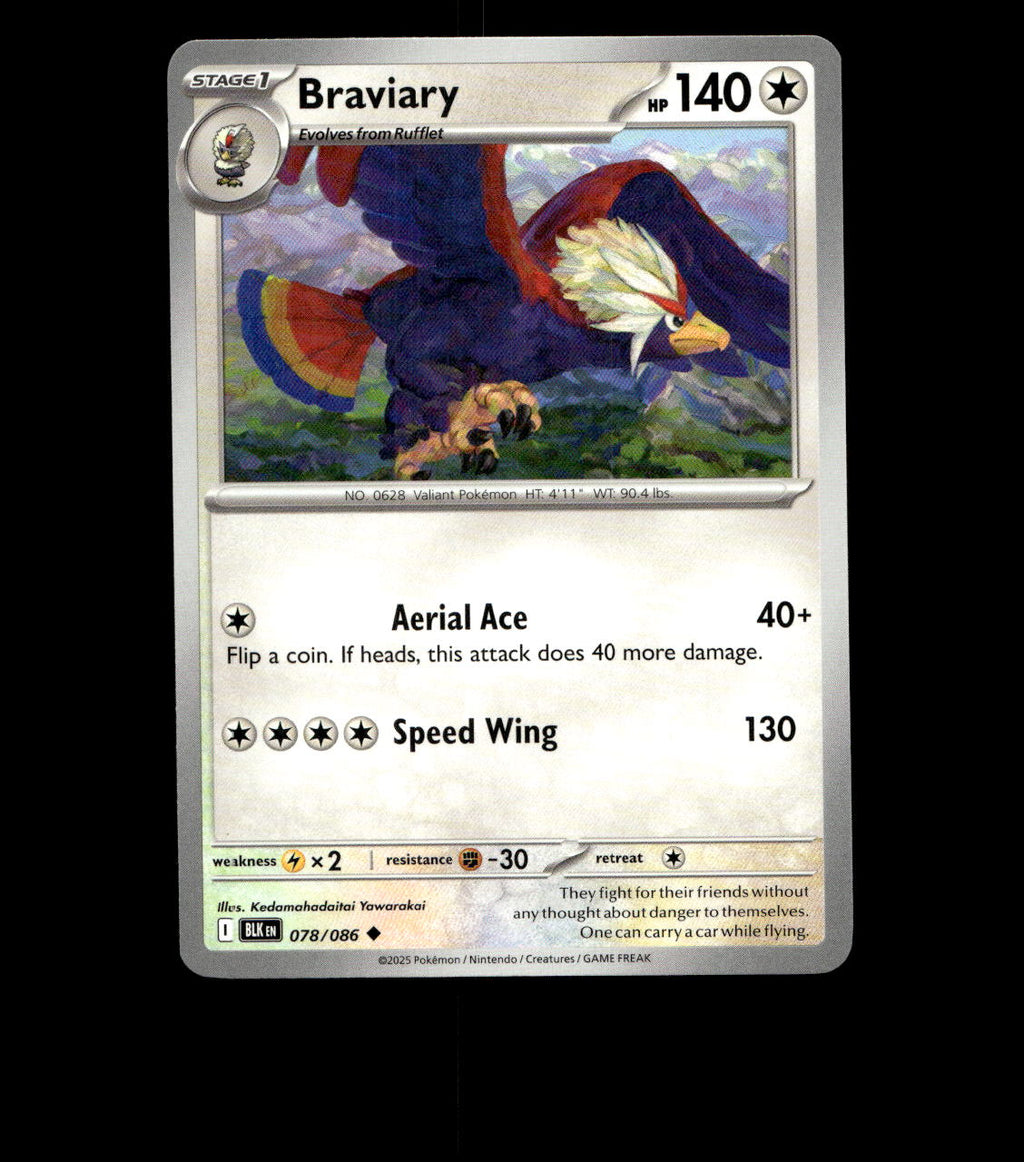 Braviary – 078/086 – Black Bolt – Non Holo – Near Mint - Pokemon Card TCG