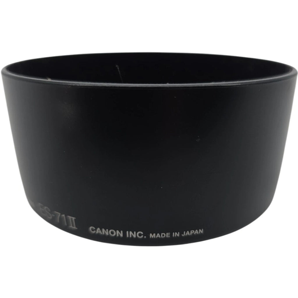 The Canon ES-71 II Lens Hood is a genuine OEM product made in Japan specifically designed for the Canon EF 50mm f/1.4 USM Lens. This circular hood is compatible with Canon brand lenses and fits securely onto the lens front with a 58mm diameter. The hood helps to reduce glare and lens flare, allowing for better image quality and sharpness when shooting in bright sunlight or at wide-angle perspectives. Made with high-quality materials and precision engineering, this lens hood is a reliable accessory to enhance your photography gear.