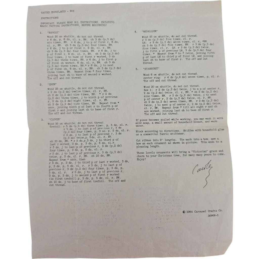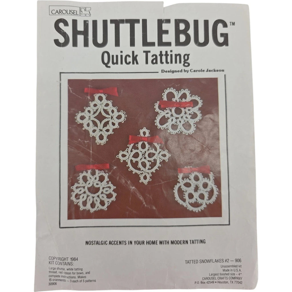 The Carousel Shuttlebug Quick Tatting Kit is a vintage product from 1984, featuring a flat shuttle with a white plastic tip designed for tatting. Made in the United States, this kit is perfect for creating intricate lace projects and includes the Tatted Snowflakes #2-906 model. With a focus on quality and craftsmanship, this shuttle is a must-have for any lace-making enthusiast looking to add a unique touch to their creations.