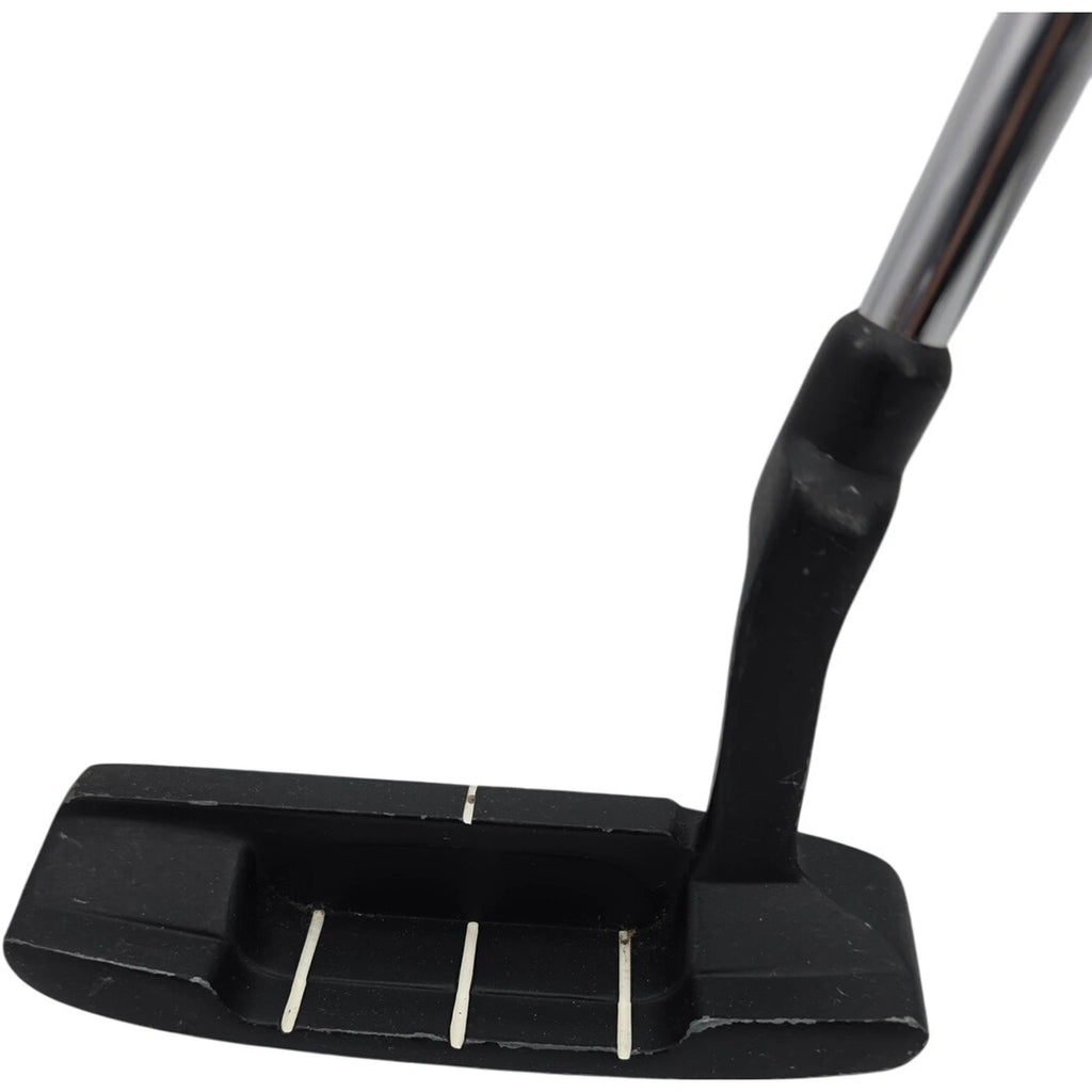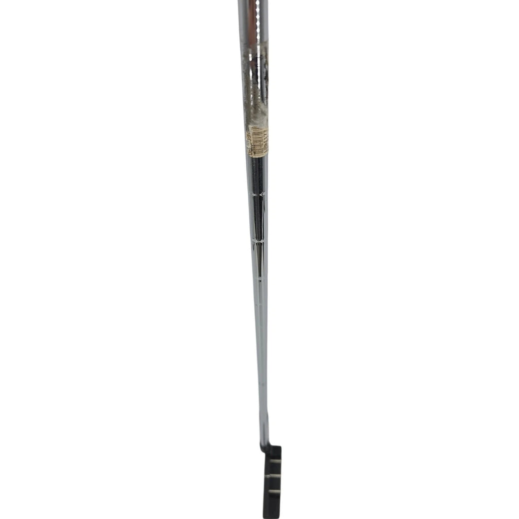 The Delta 1 Putter Golf Club is a high-quality left-handed men's club with a steel shaft and original grip, measuring 35 inches in length. This blade-style putter features a silver and black color scheme and a low spin for precise shots on the green. With a low launch and kickpoint, this single club from Delta 1 is perfect for golfers looking to improve their short game and achieve more accurate putts on the course.