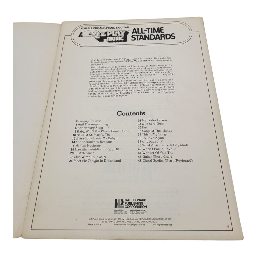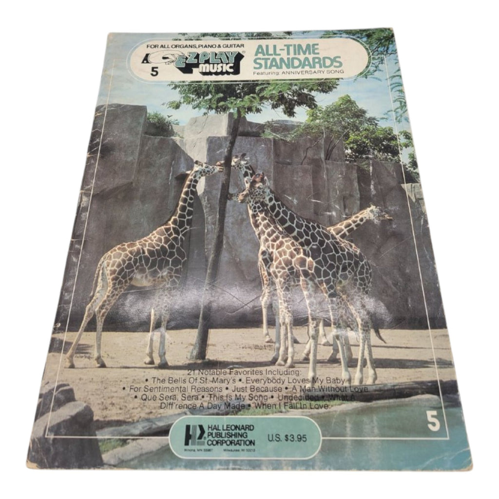 The EZ Play Music Book #5 All Time Standards by Hal Leonard 1975 is a sheet music book featuring popular pop, musical, and standards songs suitable for piano, guitar, and organ players. This book, made in the United States, contains simplified arrangements of well-known songs for beginner to intermediate level musicians to enjoy playing and learning. With a focus on classic tunes and easy-to-follow sheet music, this book is a valuable resource for musicians looking to expand their repertoire.
