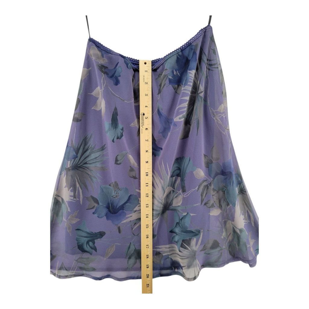 The Floral Purple Sheer Camisole Tank Top in size Small is a stylish and versatile piece for women. The sleeveless design with strappy sleeves and a pullover closure make it perfect for casual occasions. Made of chiffon fabric with a floral print accent, this camisole has a regular fit and bohemian theme, adding a touch of femininity to any outfit. The sheer detail adds a romantic and elegant touch, while the machine washable feature ensures easy care and maintenance.