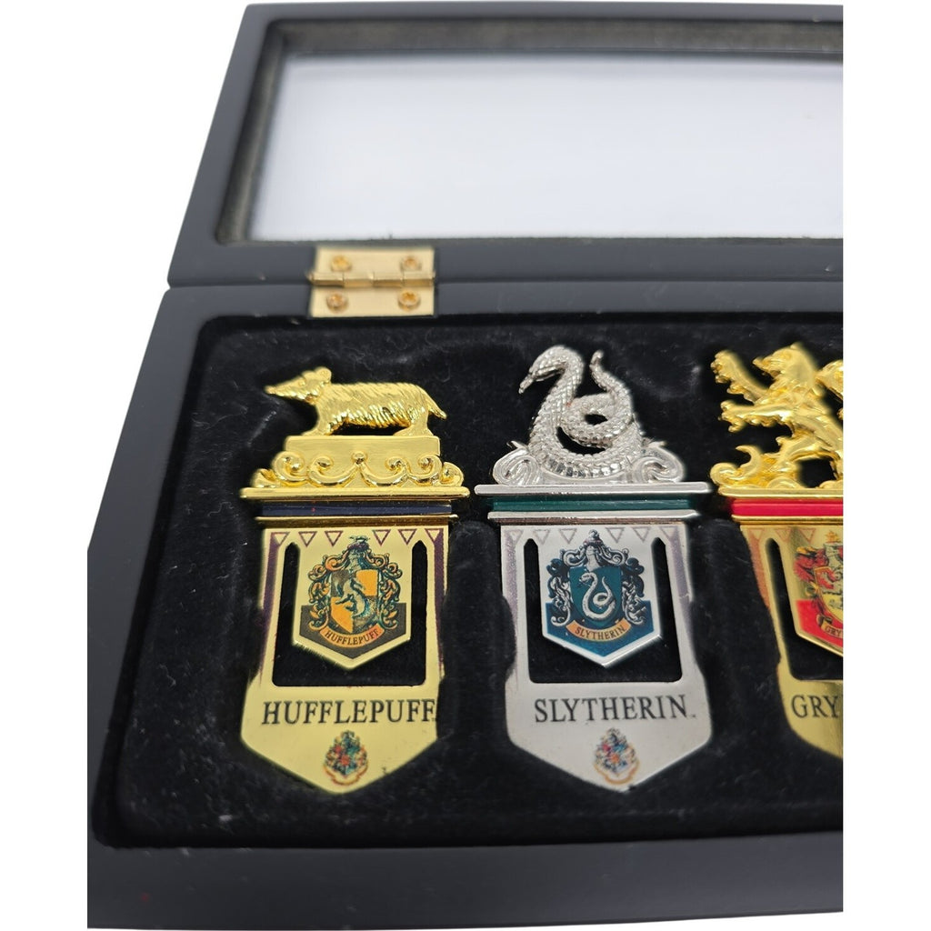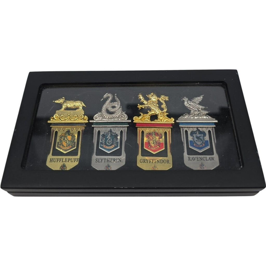 The Harry Potter Hogwarts House Metal Bookmarks in Case Collection of 4 is a set of rectangle-shaped bookmarks featuring the iconic Hogwarts houses from the Harry Potter series. Each bookmark is made of metal and comes in a multicolor design, perfect for fans of the theme. The set includes a storage box for keeping the bookmarks organized and protected, making it a must-have accessory for any Harry Potter enthusiast looking to personalize their reading experience. Made in China, this collection of bookmarks is a unique and practical addition to any book lover's collection.