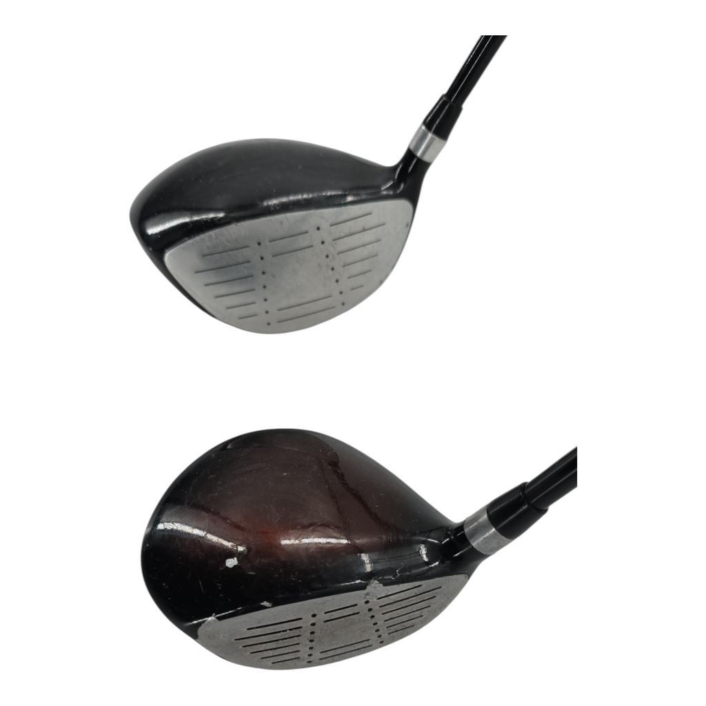 The Horizon C.C. Plus Driver 1 Wood 10.5° & 5 Wood 19° Golf Clubs feature stainless steel heads with a graphite shaft for a flex that is ideal for mid-launching shots. The clubs have a mid spin, mid-kickpoint, and standard lie angle, making them suitable for right-handed male golfers looking to improve their game with fairway woods and drivers. The sleek black and brown color scheme adds a stylish touch to these high-quality clubs from the Horizon brand.