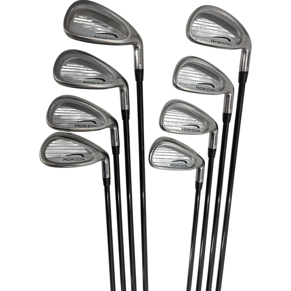 The Horizon Stainless Steel 3-PW Iron Set is a high-quality golf club set designed for right-handed male golfers. The set includes 8 clubs with a stainless steel head and black graphite shafts, providing excellent performance on the golf course. With a regular flex and standard lie angle, these clubs offer a perfect combination of distance and control for golfers looking to improve their game. The Horizon brand is known for producing reliable and durable golf clubs, making this set a great choice for any golfer looking to enhance their iron and wedge shots.