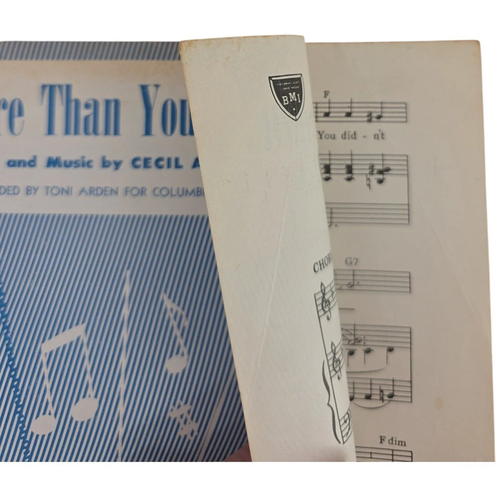 The product is vintage 1953 sheet music for the song "I Forgot More Than You'll Ever Know," recorded by Toni Arden. The sheet music includes arrangements for acoustic guitar and piano, catering to fans of easy listening and country genres. Published by Fairway Music Corp. in the United States, this intermediate level sheet music is a nostalgic collector's item for musicians and music enthusiasts looking to play classic tunes from the mid-20th century.