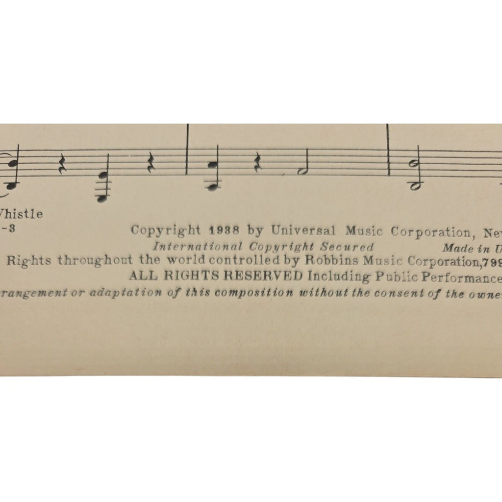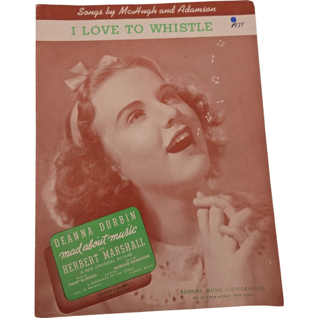 The "I Love to Whistle" sheet music from Mad About Music featuring Deanna Durbin in 1938 is a vintage and collectible piece perfect for piano players and music enthusiasts. This United States-made sheet music allows you to play the iconic soundtracks from the film, featuring the timeless tunes and melodies of Deanna Durbin. With its nostalgic charm and historical significance, this unit is a must-have for any music lover looking to add a classic piece to their collection.