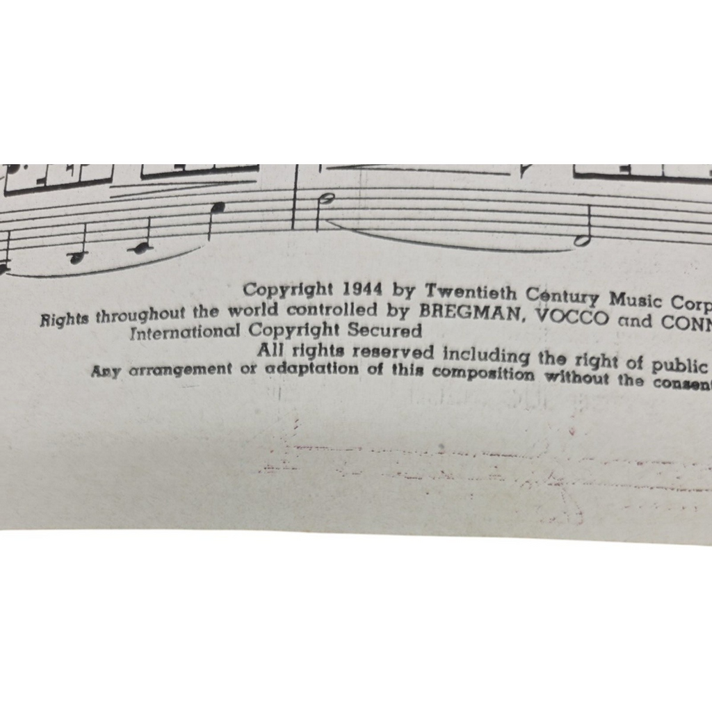 "I'm Making Believe" 1944 sheet music from the "Sweet and Low-Down" featuring Benny Goodman is a vintage and collectible piece of music memorabilia. Published by Bregman, Vocco & Conn, Inc in the United States, this sheet music is a valuable addition to any musician or music enthusiast's collection. With its unique charm and historical significance, this piece captures a snapshot of musical history from the mid-20th century. Perfect for fans of jazz and swing music, this sheet music allows musicians to play timeless classics from the past.