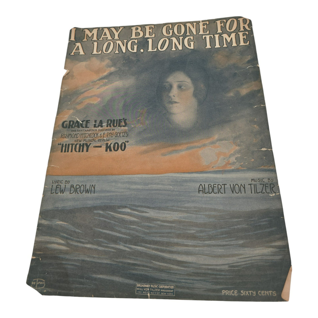"I May Be Gone For A Long Long Time" sheet music by Albert Von Tilzer is a vintage and antique musical score published by Broadway Music Corporation in the United States. This intermediate level sheet music is suitable for piano and vocals, catering to fans of musicals. With a single unit quantity, this collectible item allows musicians to enjoy the nostalgic sound and melody of classic musical compositions from the past.