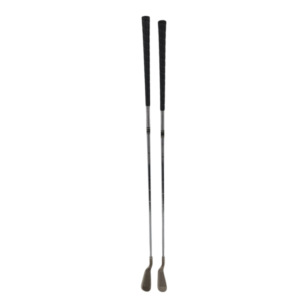 The Knight Triumph Up & In Flow Weight Iron Golf Club Bundle includes an 8-Iron and 9-Iron set in a sleek silver color. These right-handed men's clubs feature standard lie angle and regular flex steel shafts, making them ideal for players looking for precision and control in their shots. The bundle from Knight Golf offers high-quality equipment for golf enthusiasts seeking to improve their game with a reliable and durable set of irons.