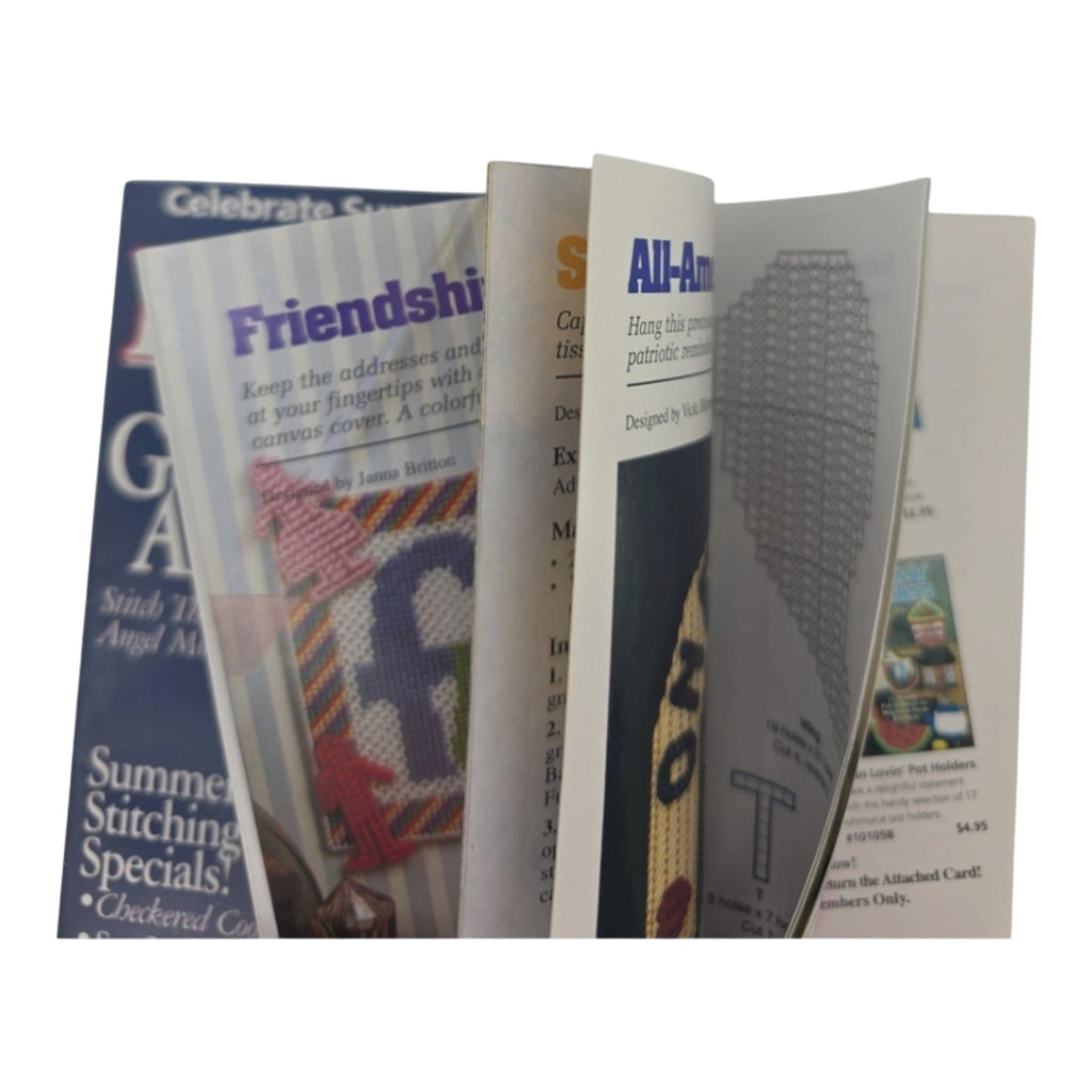 The product is a lot of four plastic canvas craft magazines from the brand Plastic Canvas Crafts. Each magazine likely contains Halloween and Christmas patterns and instructions for various craft projects. The canvas is likely multi-color and made of plastic, providing a durable and versatile material for creating decorative items. This lot offers crafters a collection of patterns and ideas to inspire their creativity and project planning.