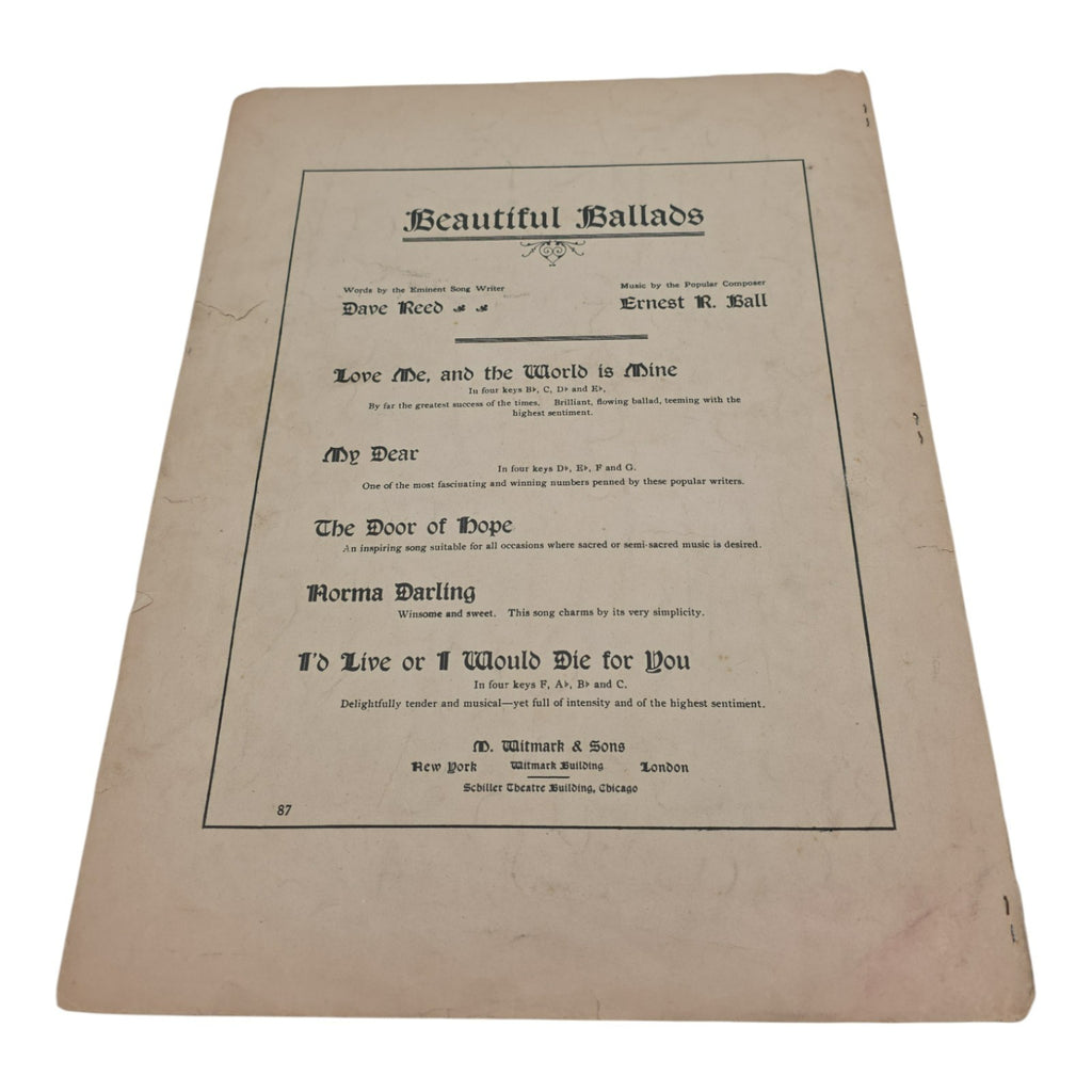 The product is a vintage piano sheet music titled "Love Me And The World Is Mine" by Dave Reed and Ernest R Ball, dating back to 1906. This sheet music is specifically designed for piano players and was manufactured in the United States. It is a unique and collectible item for music enthusiasts and collectors alike, providing a glimpse into the musical landscape of the early 20th century.