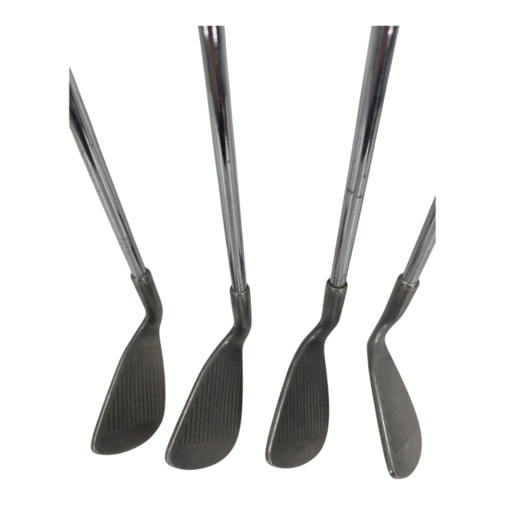 The MacGregor USA II Iron Golf Club Bundle is a set of four right-handed men's clubs, including a 7-iron, 8-iron, 9-iron, and pitching wedge. These clubs feature a silver lie angle color and a silver/black color scheme, with a standard lie angle. The R-Flex steel shaft adds to the performance of the clubs, making them a reliable choice for golfers looking to improve their game with quality iron clubs. The MacGregor brand is known for producing durable and high-performing golf clubs, making this bundle a great option for any golfer in need of versatile and powerful irons.