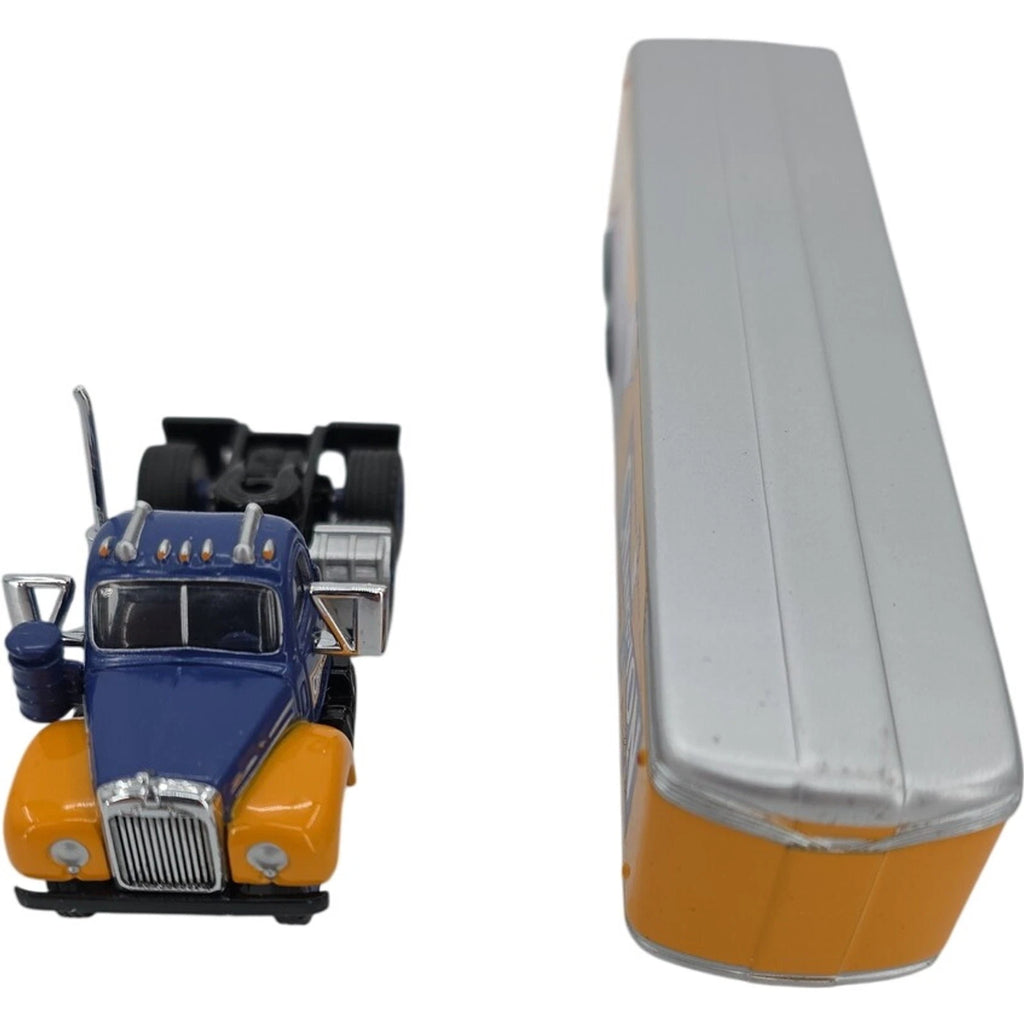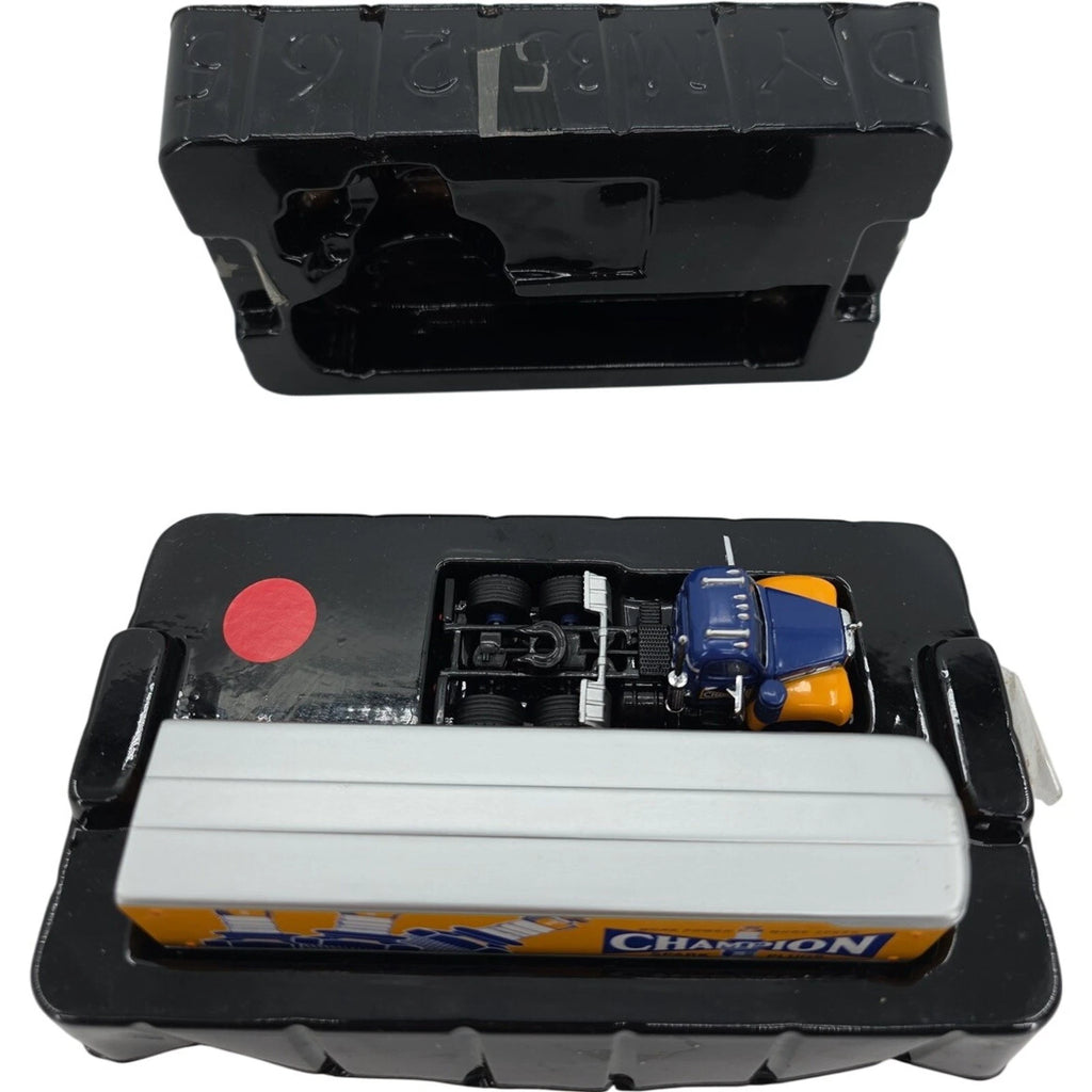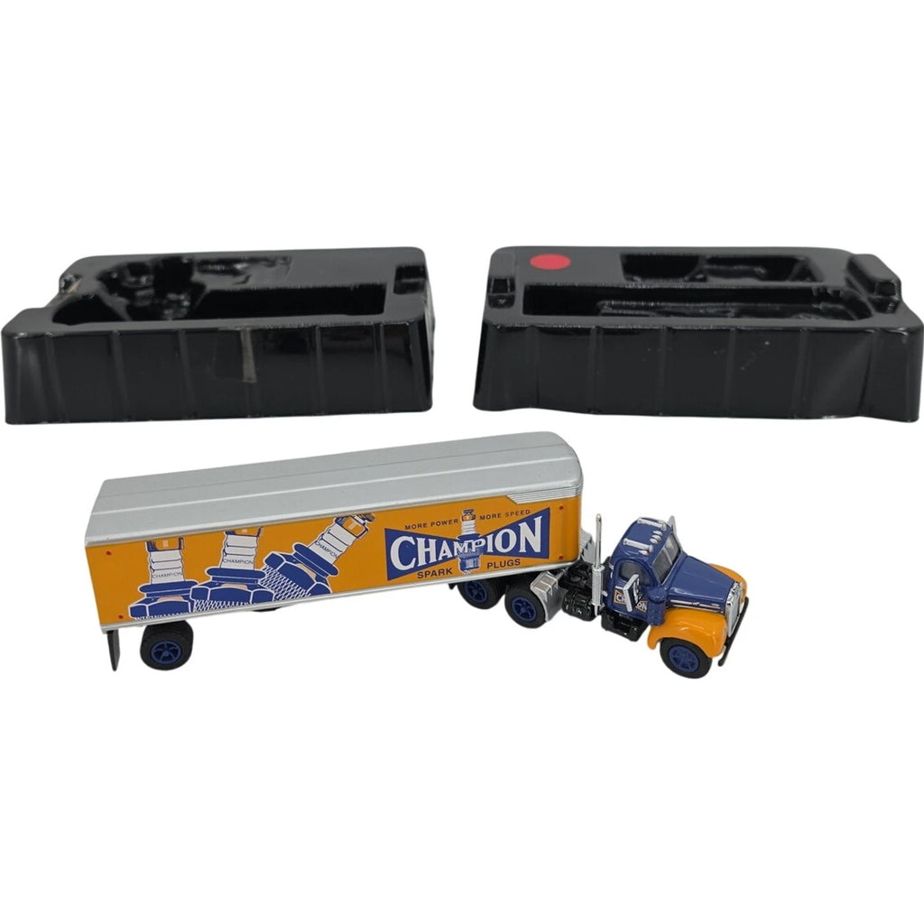 The Matchbox Dinky DYM35268 Champion Spark Plugs Semi Truck Tractor Trailer is a vintage diecast toy vehicle featuring a Mack truck model with a 1:87 scale. This collectible item showcases the Champion Spark Plugs theme, making it a unique addition to any toy or diecast vehicle collection. The high-quality craftsmanship and attention to detail in this piece make it a desirable item for enthusiasts of vintage diecast vehicles.