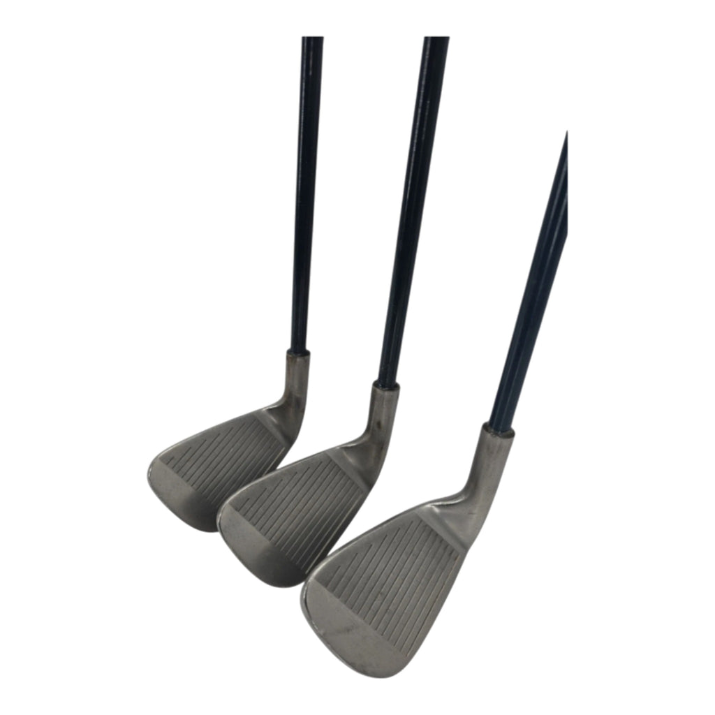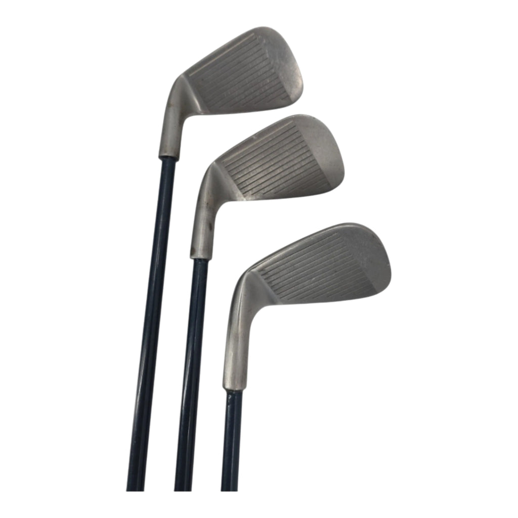 The Maxfli USA VHL Golf Club Bundle includes three clubs: an 8-iron, 9-iron, and pitching wedge, all with senior flex graphite shafts. These right-handed clubs are designed for men and feature a blade head shape. The set makeup is ideal for a variety of shots around the green, making it a valuable addition to any golfer's equipment lineup. Displaying the quality and craftsmanship of the Maxfli brand, these clubs are specifically designed for a senior player's game.