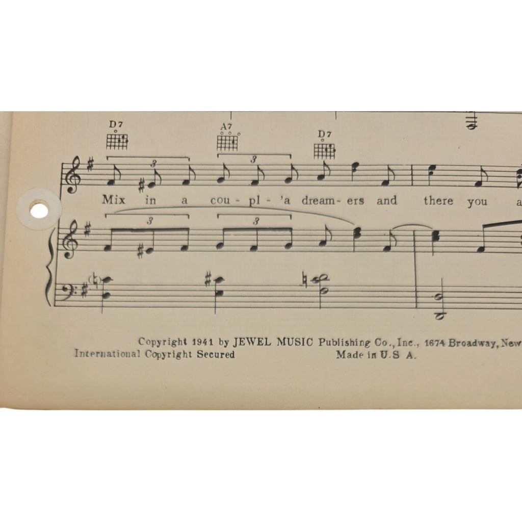The product is a vintage sheet music for the song "Moonlight Cocktail" from 1941, featuring Glenn Mille & Orchestra. This edition is specifically designed for piano and musicals genre. The sheet music provides the musician with the necessary instructions to play the song in an orchestra setting, making it a valuable and collectible item for music enthusiasts and collectors alike.
