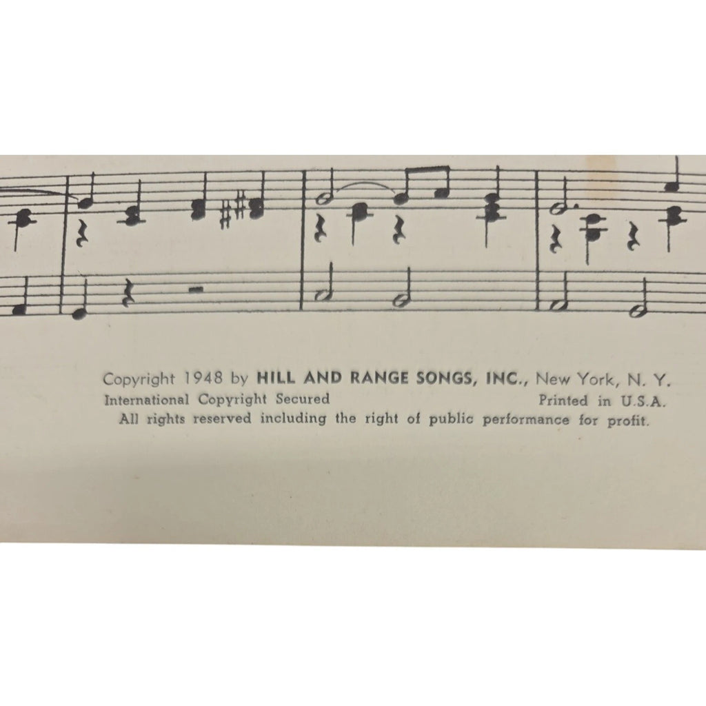 The product is vintage sheet music for the song "New Texas Playboy Rag" from 1948, composed by Bob Wills and Cindy Walker. Published by Hill and Range Songs, Inc., this single unit of sheet music falls under the genre of Musicals. Perfect for musicians or collectors interested in classic musical scores, this piece of history captures the essence of American musical tradition.