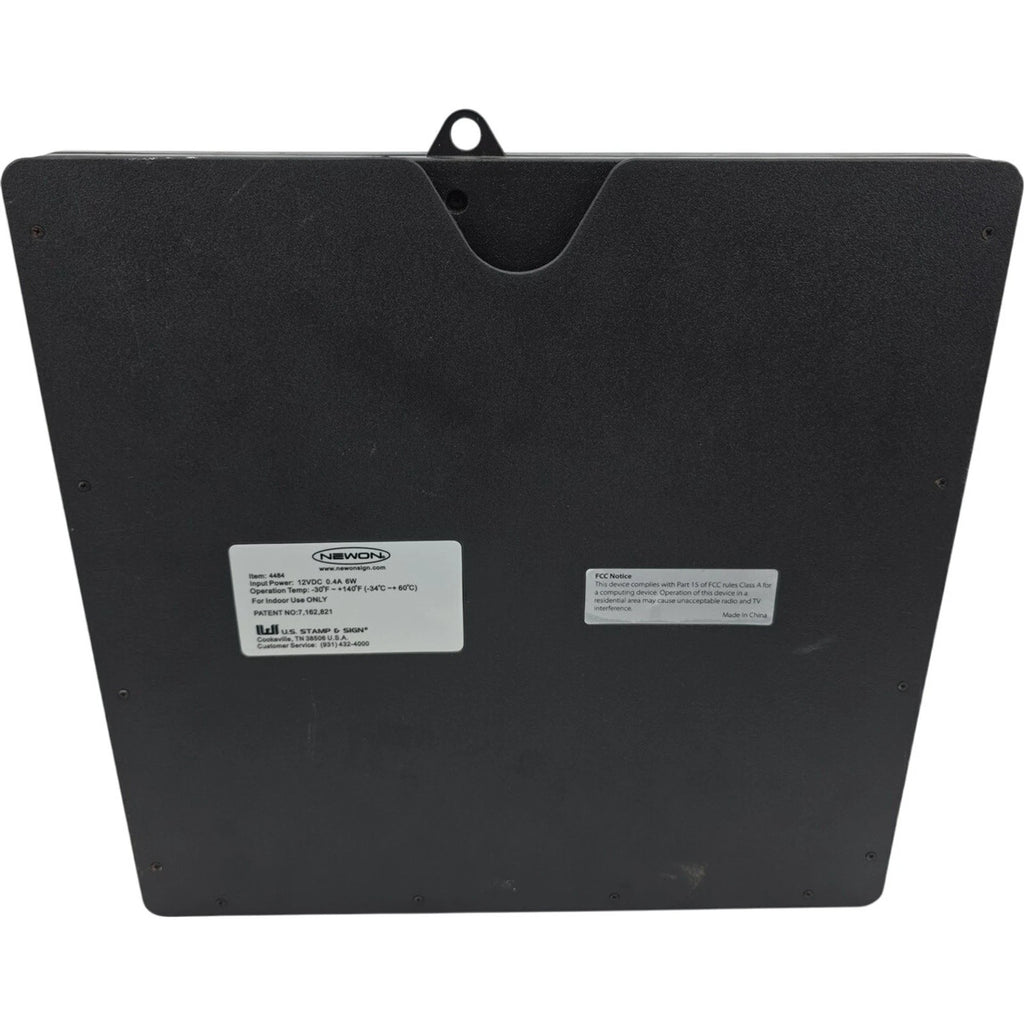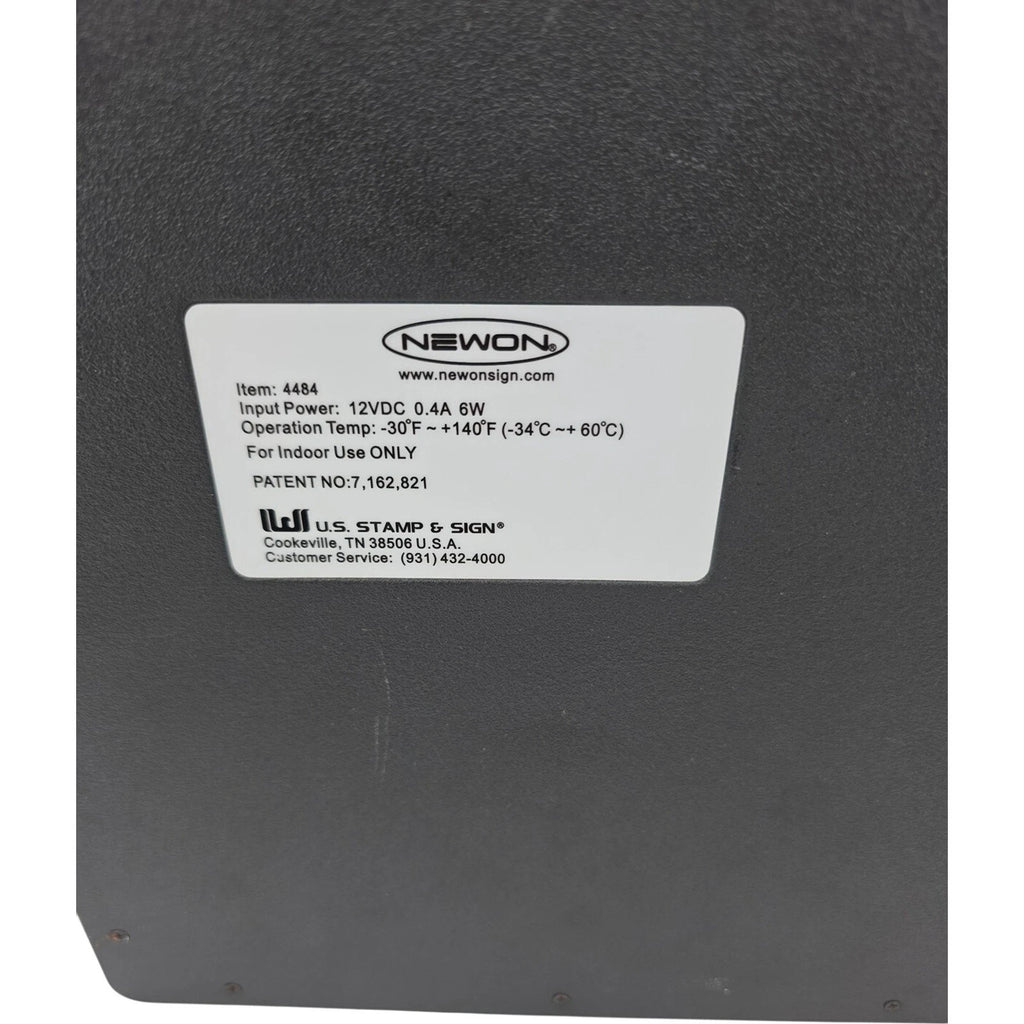 The Newon 4484 Lighted Business Hours Sign is an illuminated frame sign that is designed for wall mounting. Featuring energy-efficient LED illumination, this sign is made of durable plastic material and comes in a vibrant multi-color display. The unit quantity is one, making it a convenient and eye-catching addition to any retail or service business looking to communicate their business hours to customers.