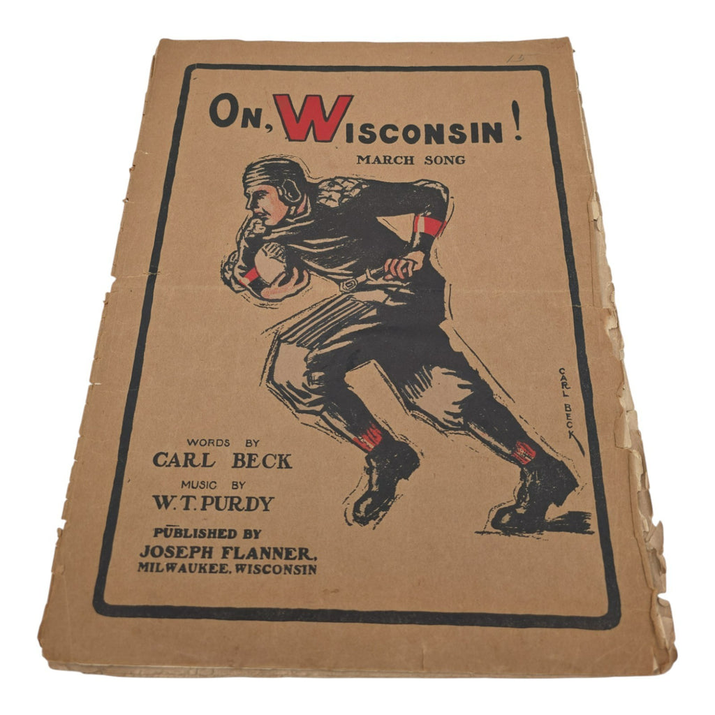 The product is a vintage sheet music titled "On Wisconsin March" by Carl Beck. It is in piano format and was manufactured in the United States. This unit contains one sheet of music, making it a single musical instrument or gear item. Perfect for collectors or musicians looking to learn or perform classic tunes from the United States.