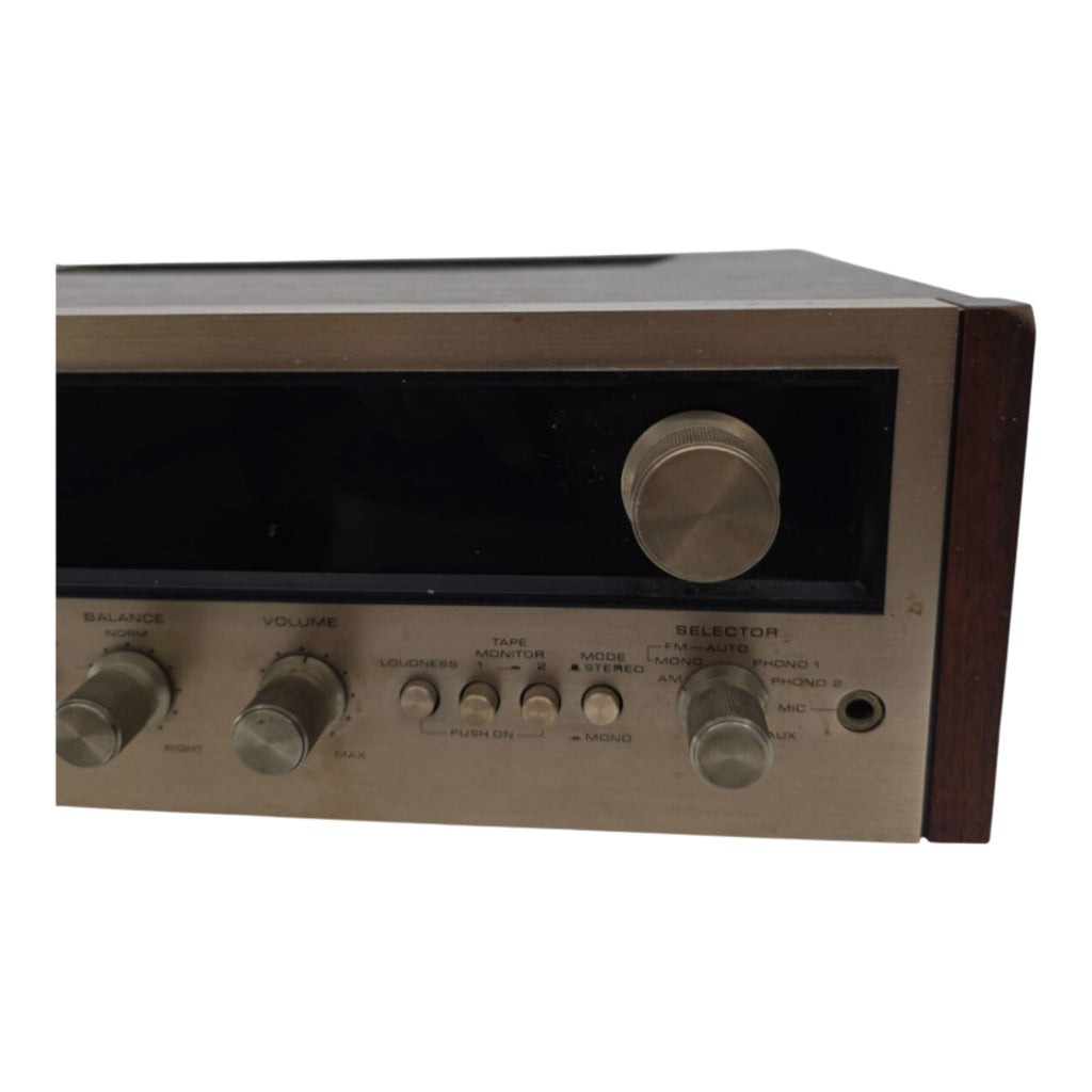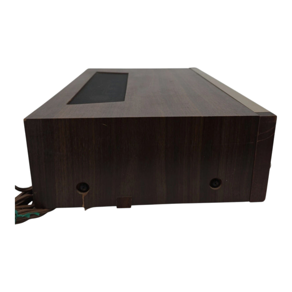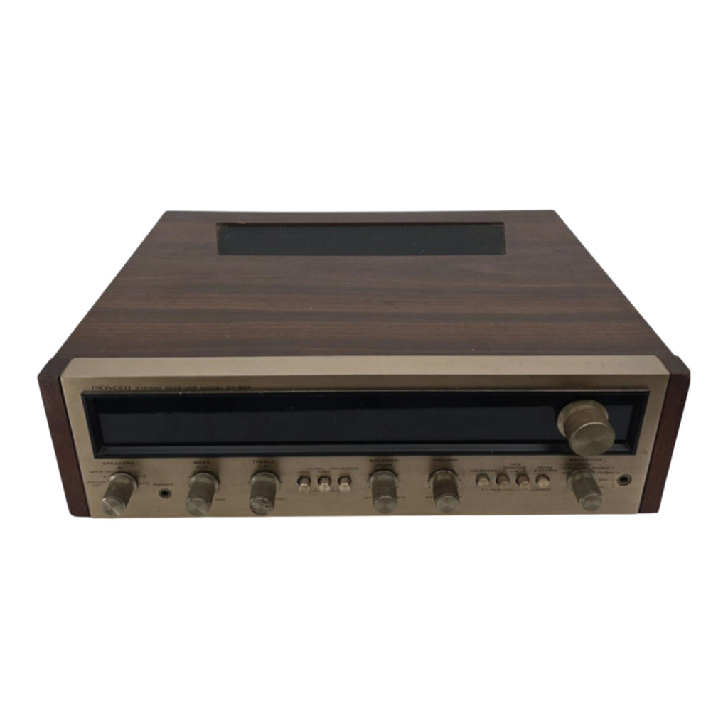 The Pioneer SX-626 Vintage Stereo Receiver is a classic piece of consumer electronics manufactured in Japan. This unit, though non-working and sold for parts, still exudes a retro charm with its wood case and Pioneer branding. Perfect for vintage audio enthusiasts or collectors of unique electronics, this stereo receiver embodies the craftsmanship and design of a bygone era.