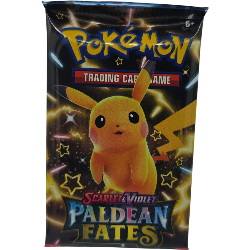 This Pokémon Scarlet & Violet Paldean Fates Booster Pack includes 10 factory-sealed game cards from the Paldean Fates expansion. This pack is perfect for collectors and competitive players seeking powerful new cards and rare pulls. Recommended for ages 6 and up and fully sealed.