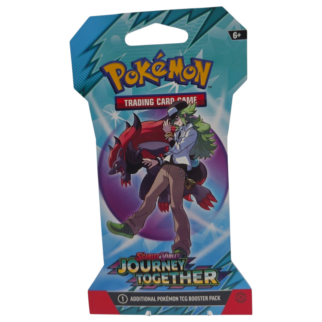 This Pokémon Scarlet & Violet Journey Together Booster Pack comes in a single-pack blister. The blister contains 1 sealed Pokémon TCG booster pack, perfect for players, collectors, and fans seeking to expand their decks or pull rare cards. Recommended for ages 6 and up and fully factory sealed.