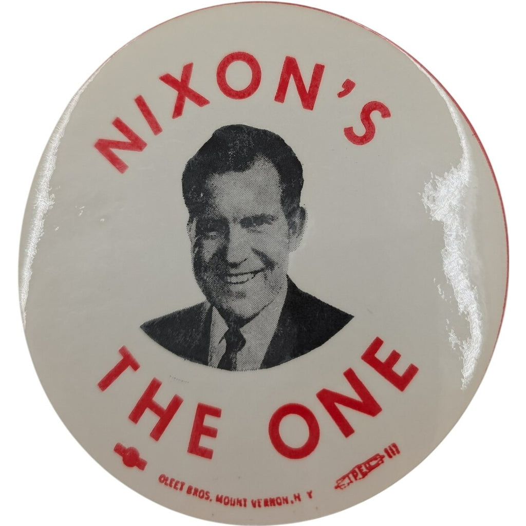 The Richard Nixon The One Campaign Sticker is a collectible item from Nixon's 1968 presidential campaign. This sticker features the theme of politics and was made in the United States. It serves as a historical memorabilia piece from a significant moment in American political history, making it a valuable item for collectors and enthusiasts of US presidential campaigns. The design and message of the sticker reflect the political landscape of the time and the campaign strategies used by Nixon to win the presidency.
