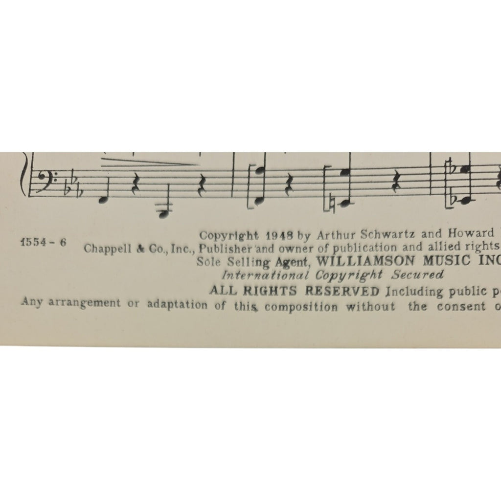 The product is vintage sheet music for the song "Haunted Heart" from 1948, written by Arthur Schwartz and Howard Dietz. The sheet music is in English and includes both piano and voice parts, making it suitable for intermediate level musicians. It was published by Chappell & Co., Inc. and Williamson Music, Inc. in the United States, representing a piece of musical history from the genre of Musicals. This collectible item allows musicians to play and sing a classic song from the mid-20th century, adding a nostalgic touch to their repertoire.