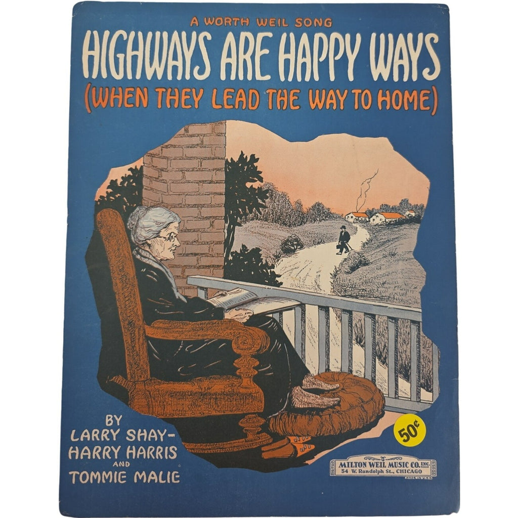 The product is sheet music for the song "Highways Are Happy Ways" by Harry Harris, Tommie Malie, and Larry Shay. Printed by Milton Weil Music Co in the United States, this music is suitable for intermediate level guitar, piano, and ukulele players who enjoy pop and musical genres. With lyrics included, this vintage and antique sheet music provides a nostalgic glimpse into the past and offers a fun and educational experience for musicians looking to play classic tunes.