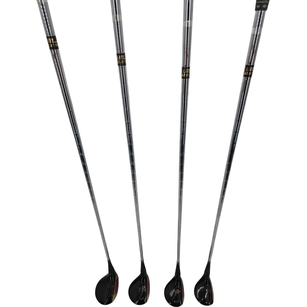 The Spalding Executive Driver 3 4 And 5 Fairway Woods Golf Club Bundle features a set of four right-handed fairway woods with regular flex steel shafts. The clubs are part of the Executive Professional model and come with original grips. This unisex golf club set is perfect for players looking for high-quality woods to enhance their game on the fairway.