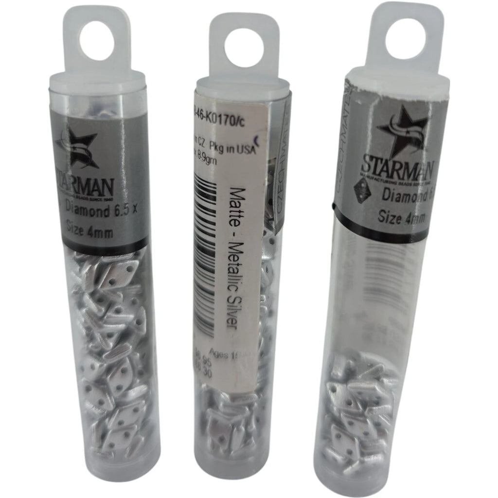 The Starman CzechMates Diamond Beads in Matte Metallic Silver are a high-quality addition to any jewelry or craft project. With a sleek diamond shape and metallic finish, these beads add a touch of elegance and sophistication to any design. The silver color adds a classic and versatile flair, while the 6.5x4mm size makes them the perfect choice for a variety of projects. Each tube contains 3 units of these beautiful beads, ensuring you have plenty for all your crafting needs.