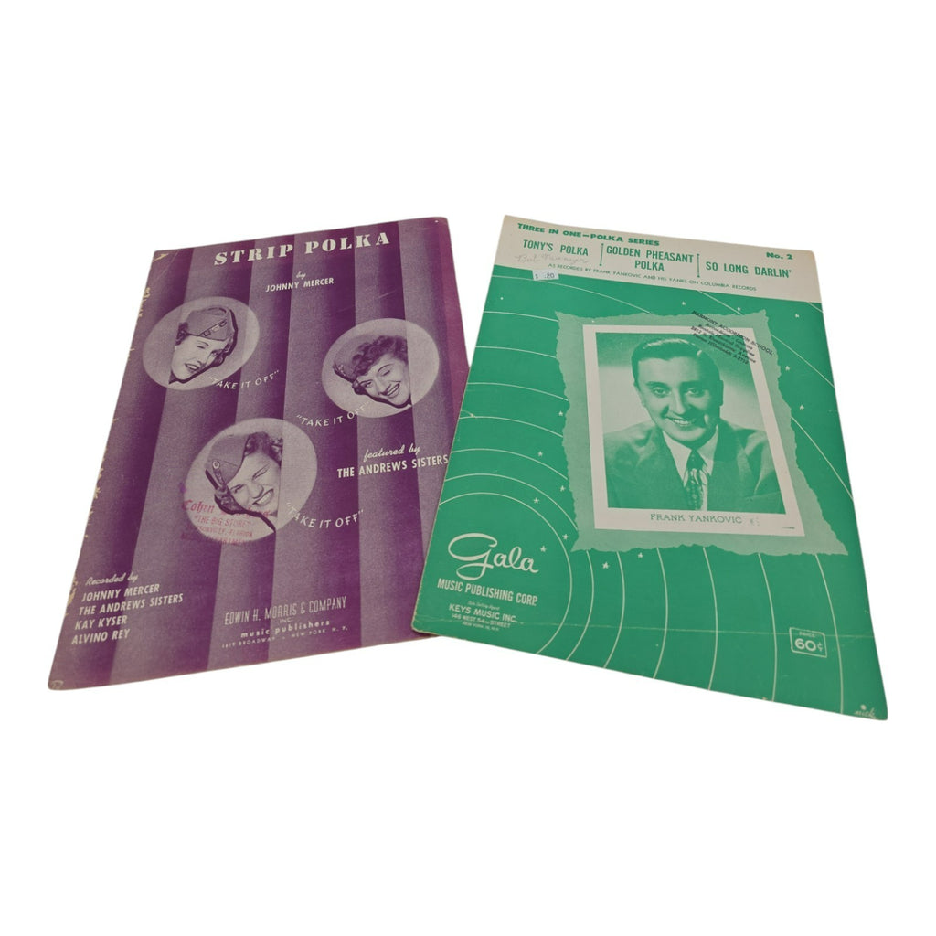 The product is a vintage sheet music collection for the songs "Strip Polka" by Johnny Mercer and "Three In One Polka Series." The sheet music is in its original format and was manufactured in the United States. As a unit quantity of 1, this collection would be a valuable addition to any music lover's collection, especially for fans of musicals and vintage sheet music.