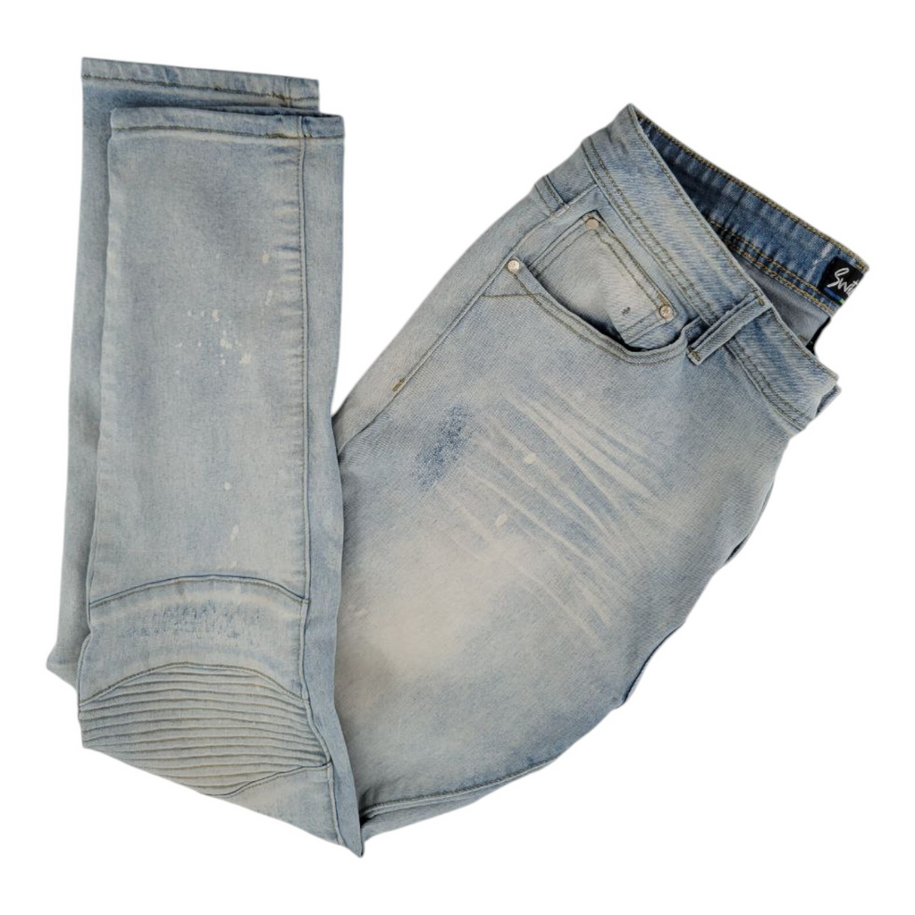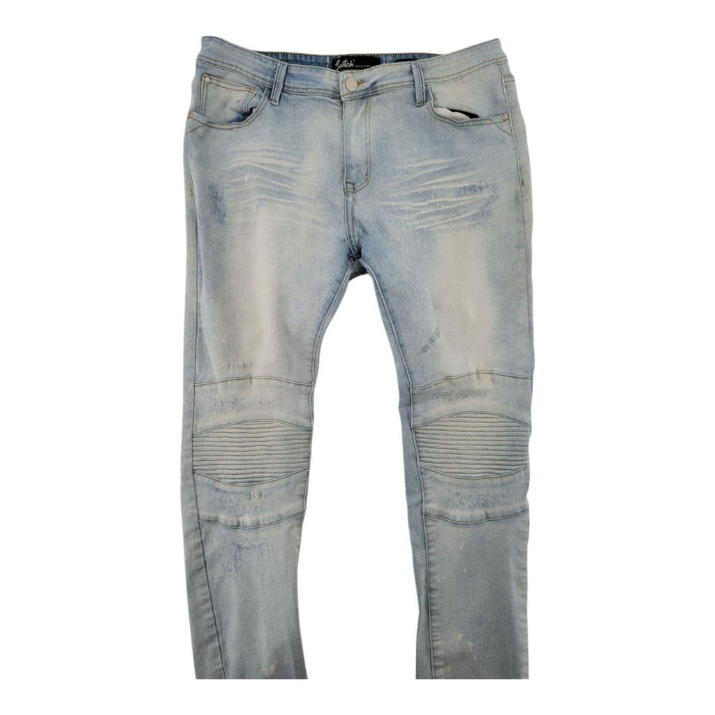 The Switch Remarkable Moto Slim Taper Fit Jeans are a stylish and edgy choice for men looking for a comfortable and flattering fit. With a light blue color and distressed detailing, these denim jeans feature a slim fit and tapered leg, making them perfect for a variety of streetwear styles. The zip and button closure adds functionality to these machine washable jeans, while the stretch fabric ensures a comfortable and flexible wear. Whether you're into motorcycles, punk, grunge, 90s, or gothic fashion, these jeans are sure to make a statement.