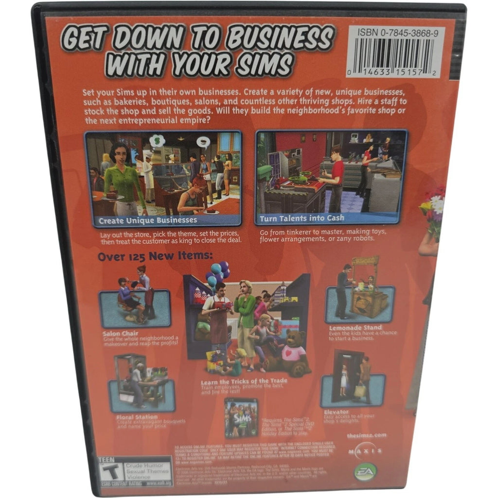 "The Sims 2: Open for Business" is an expansion pack for the popular simulation game, The Sims 2. Released in 2006 by Maxis, this expansion pack adds new features and content to the game, allowing players to run their own businesses in addition to managing their Sims' lives. With a Teen rating, this expansion pack is designed for the PC platform and is compatible with NTSC-U/C (US/Canada) region codes. As part of The Sims Series, this expansion pack offers an engaging and immersive gameplay experience for fans of the franchise.